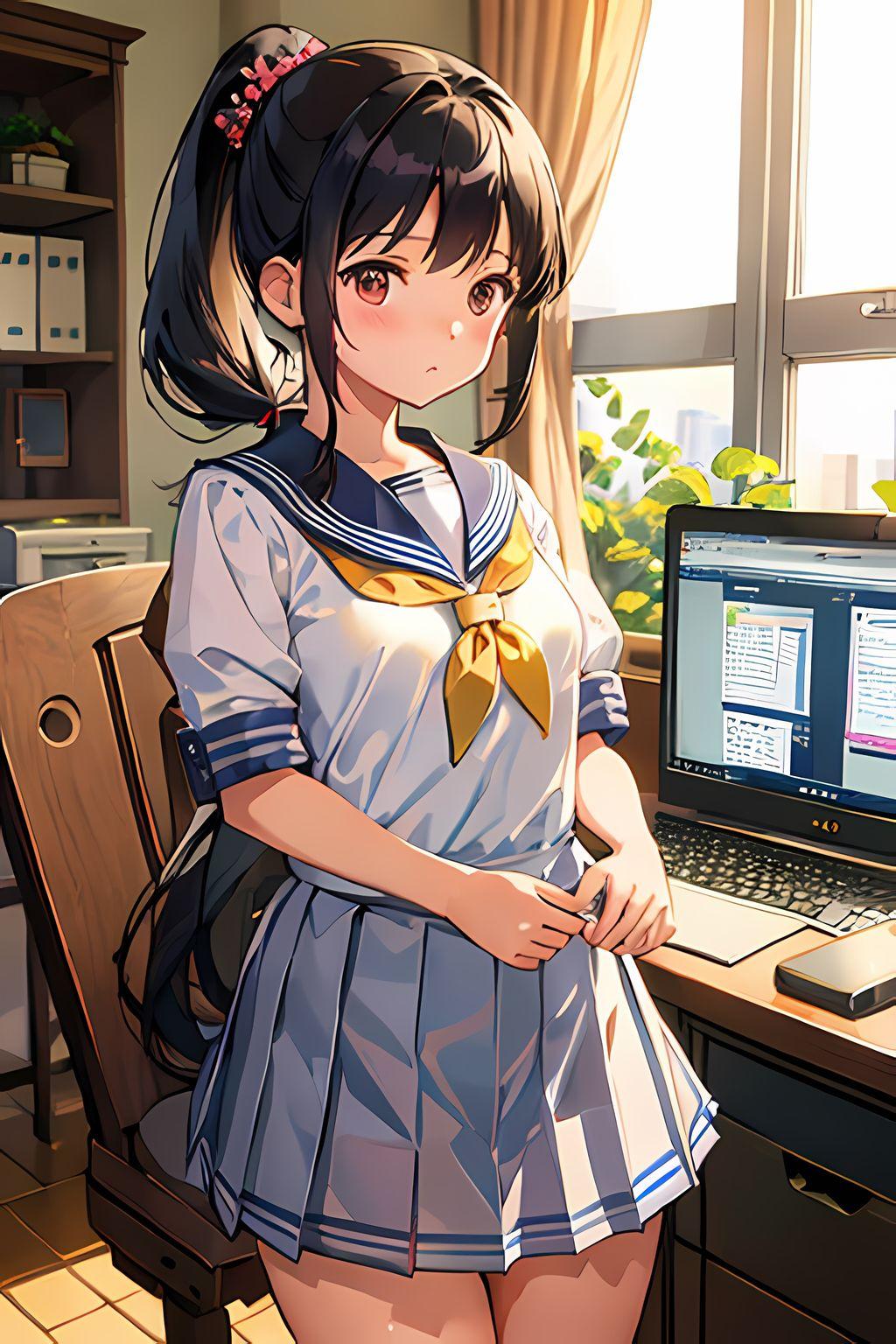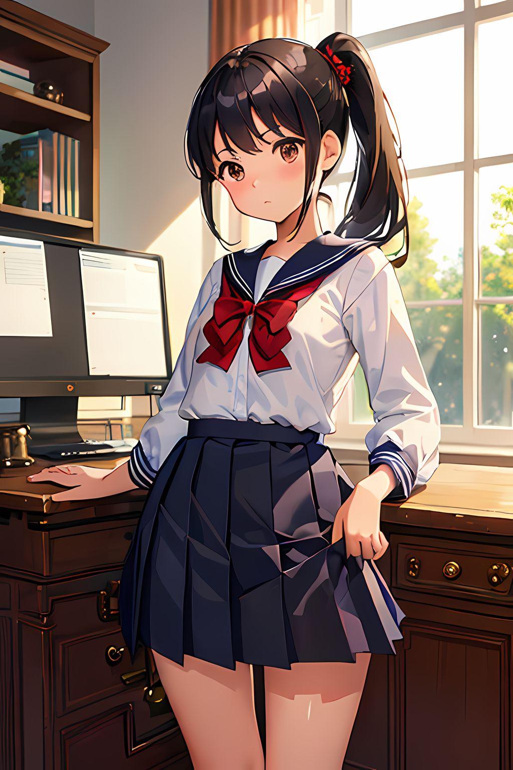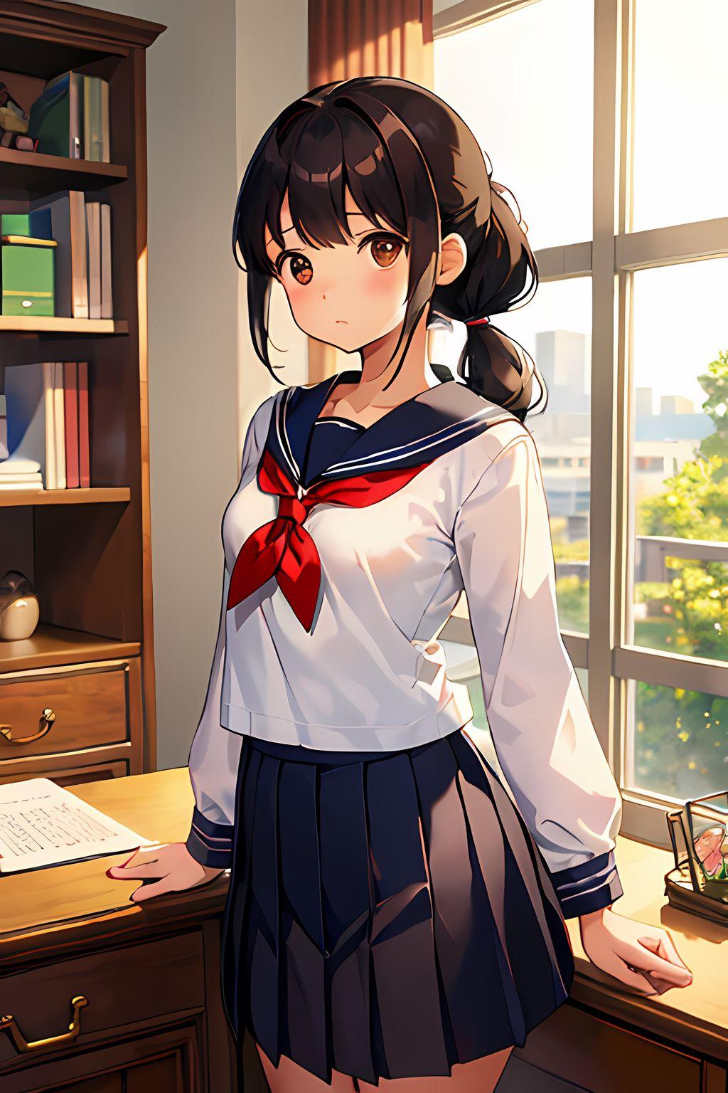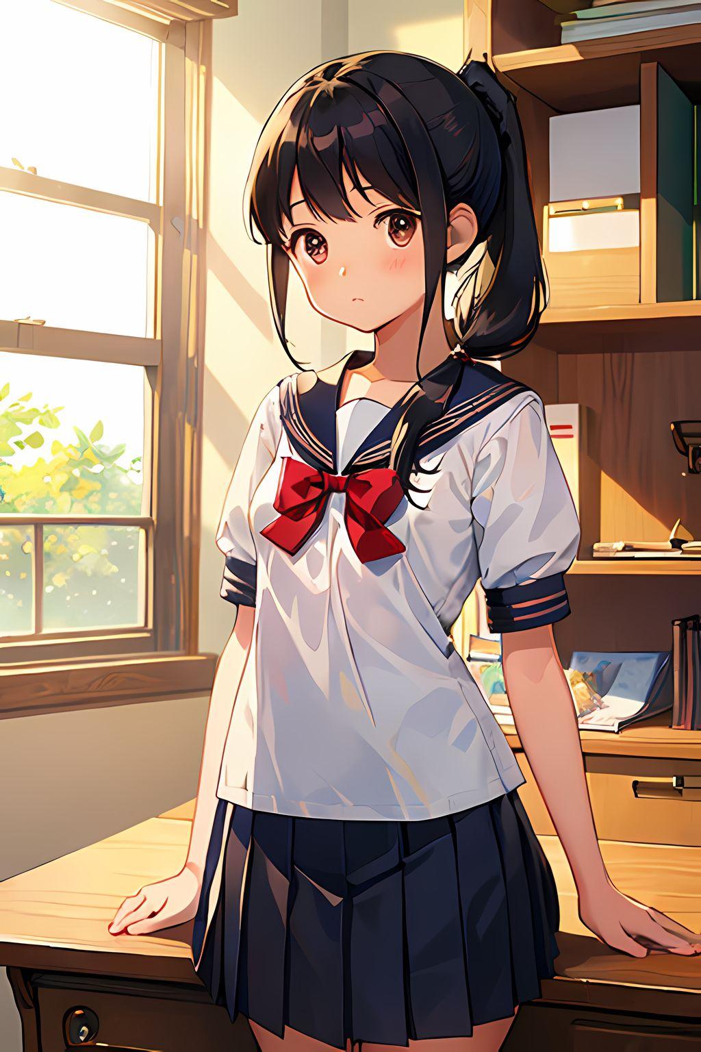 女の子はいつもの黒髪ポニーの茶瞳っ娘(お目々奇麗Ver)
