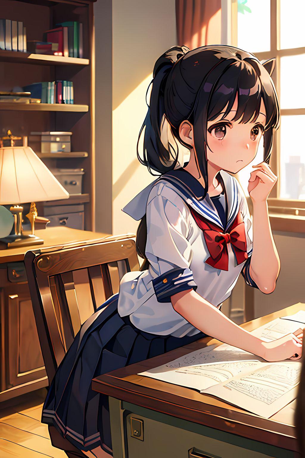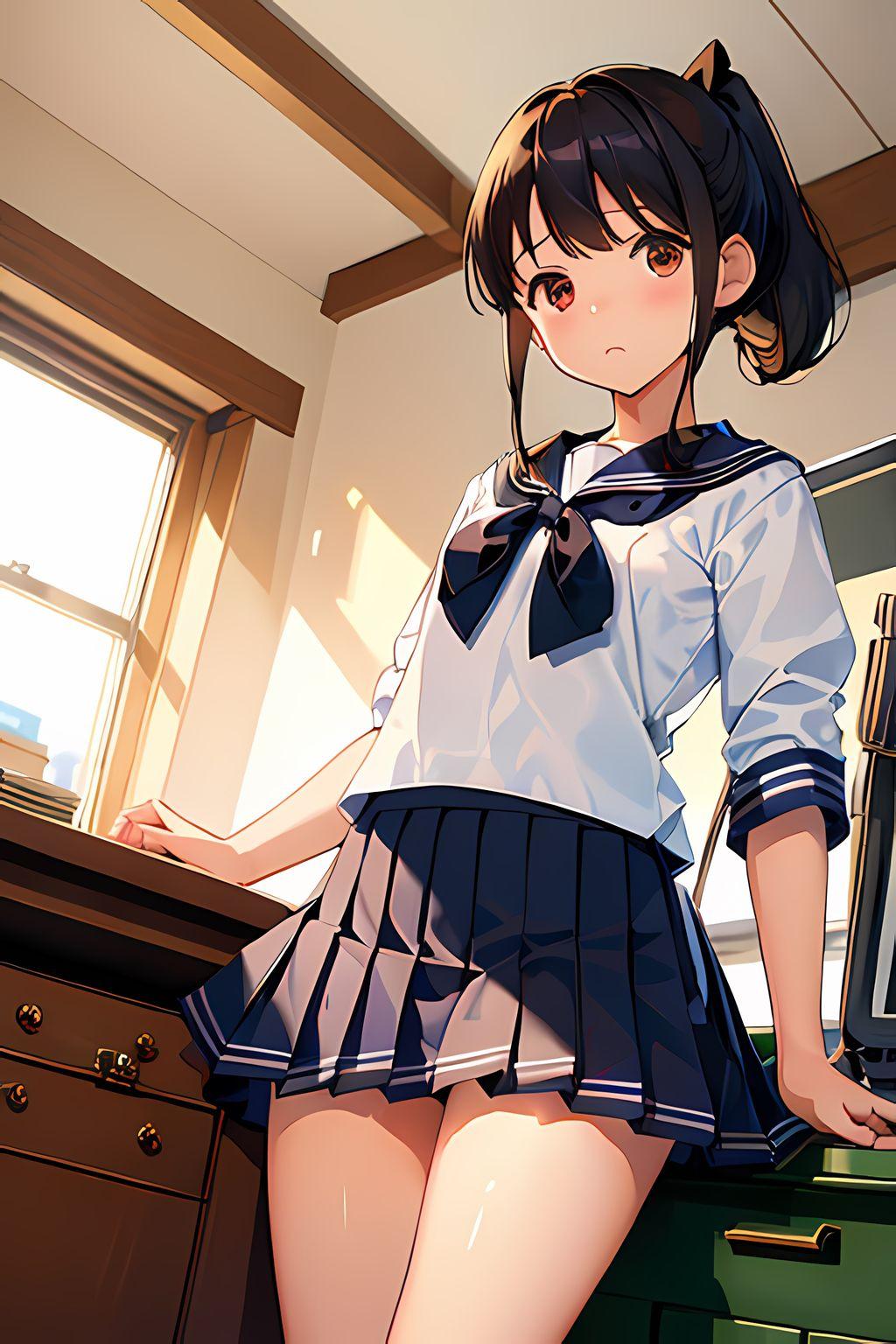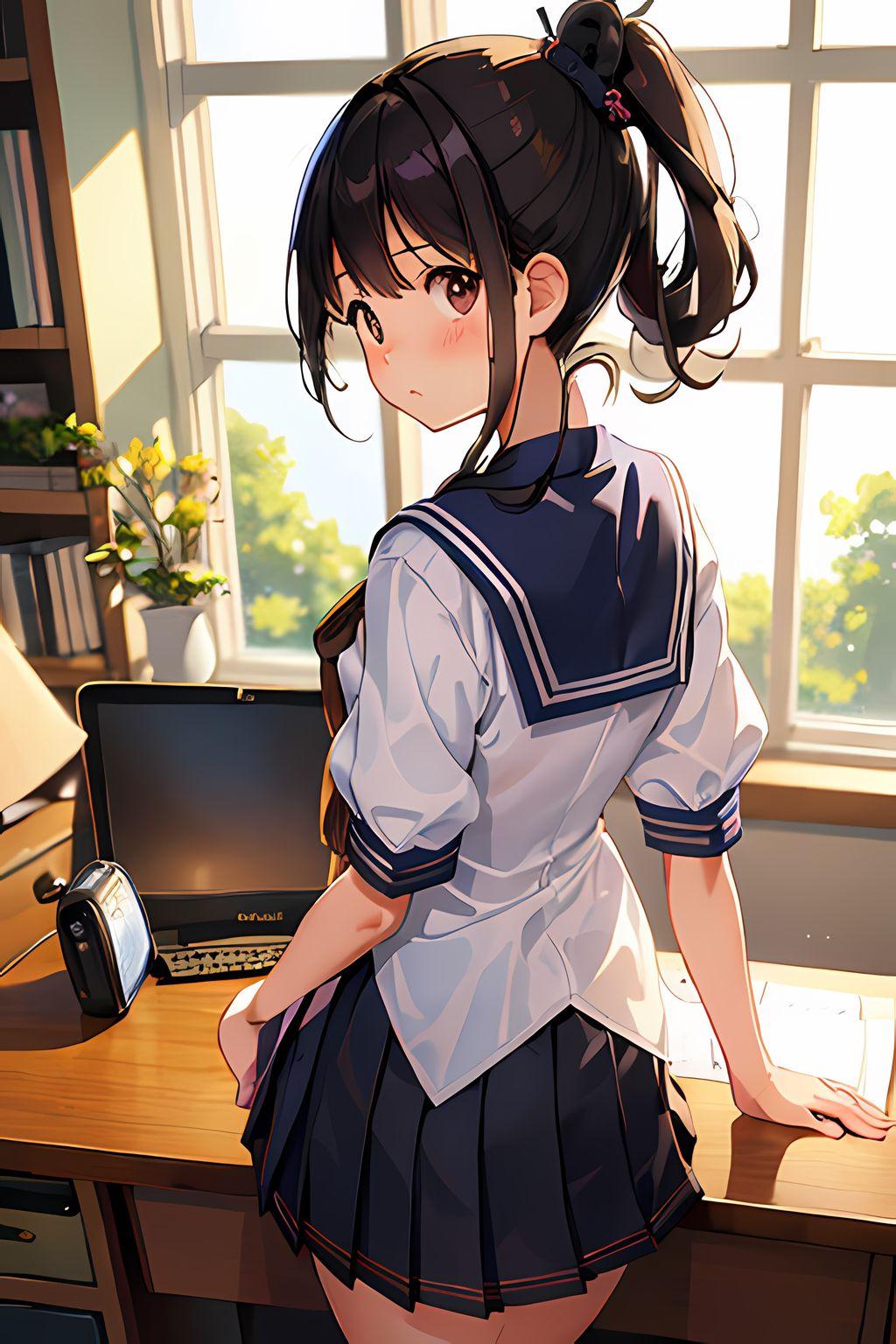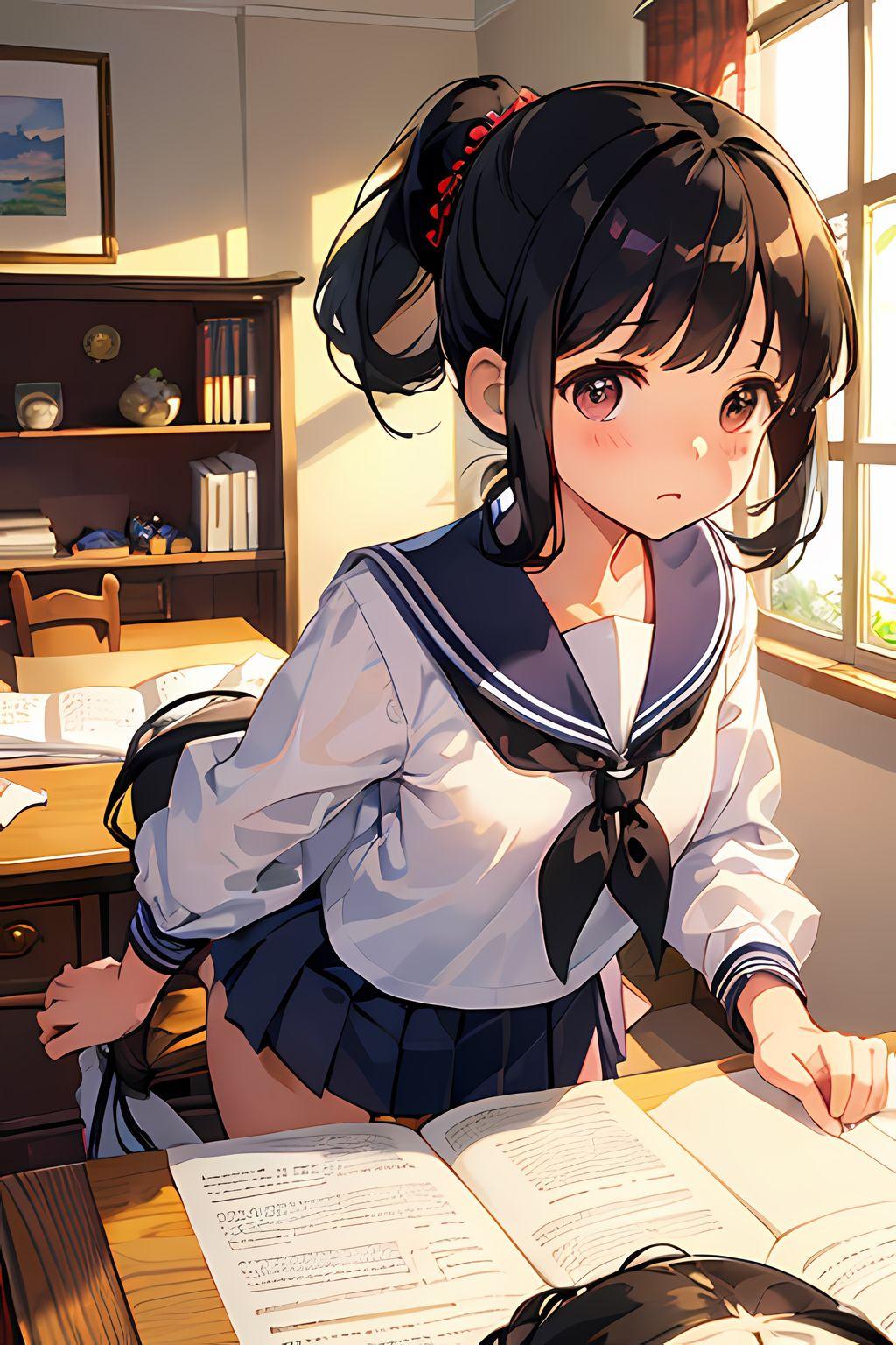 女の子はいつもの黒髪ポニーの茶瞳っ娘(お目々奇麗Ver)