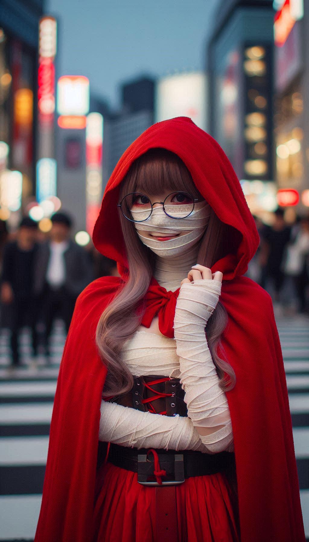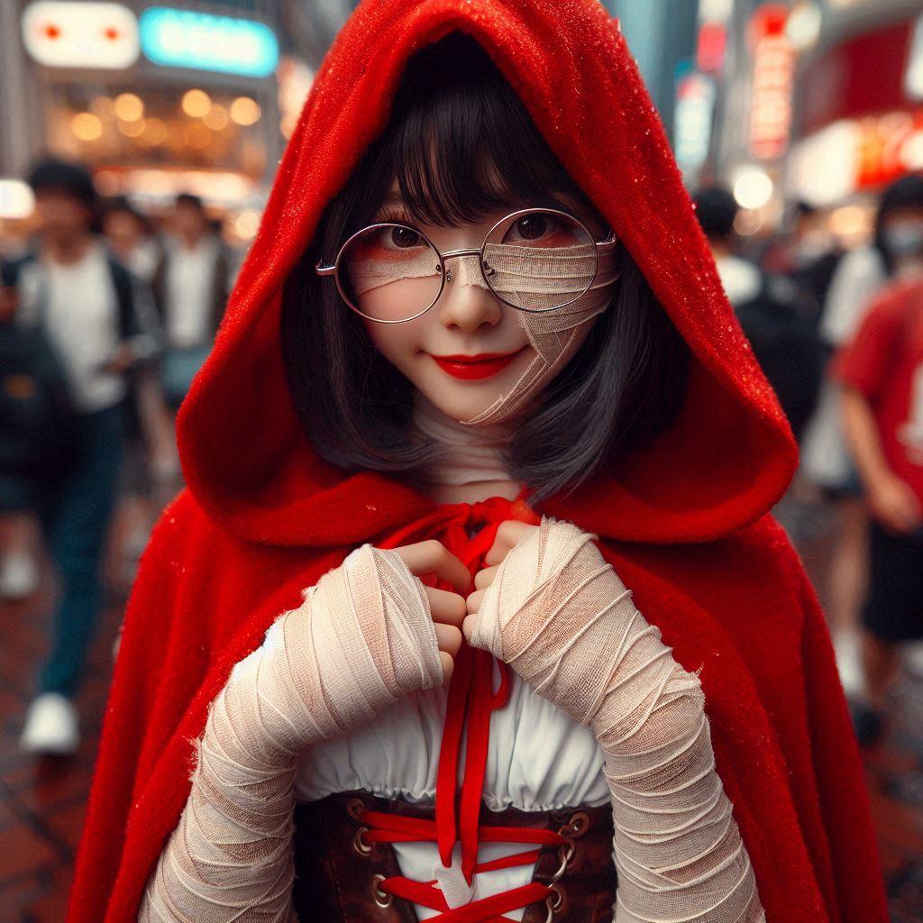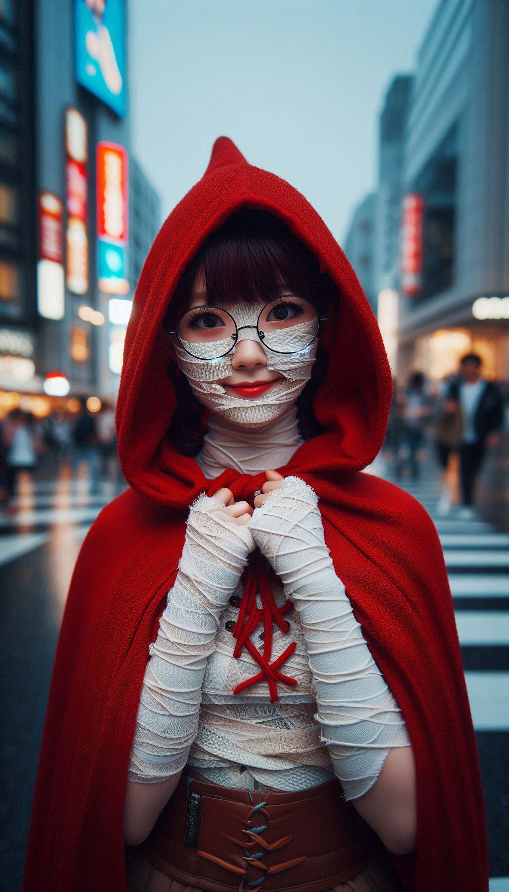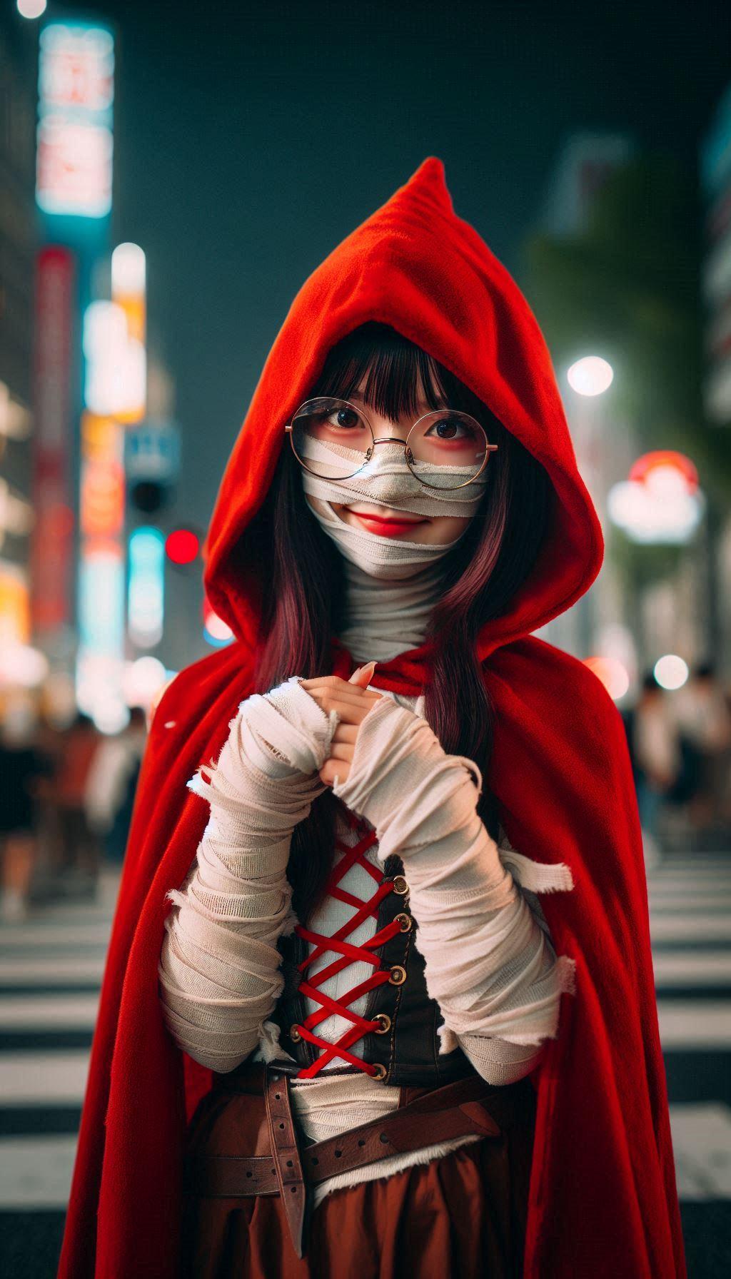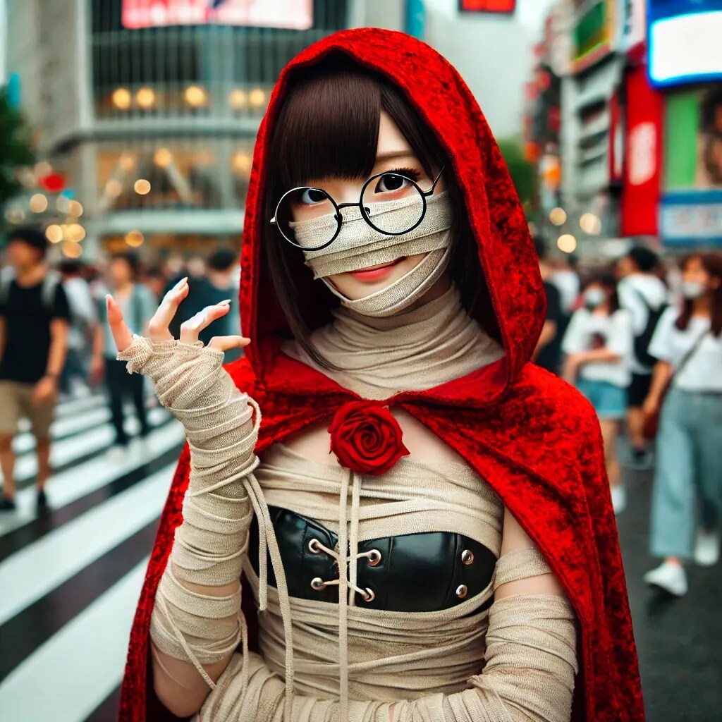 赤ずきんちゃんですらコスプレなのに、その上ハロウィン仕様のミイラコスとか情報量多すぎて処理できるかと思ったのですが、最近のAIには問題なかったようです😅