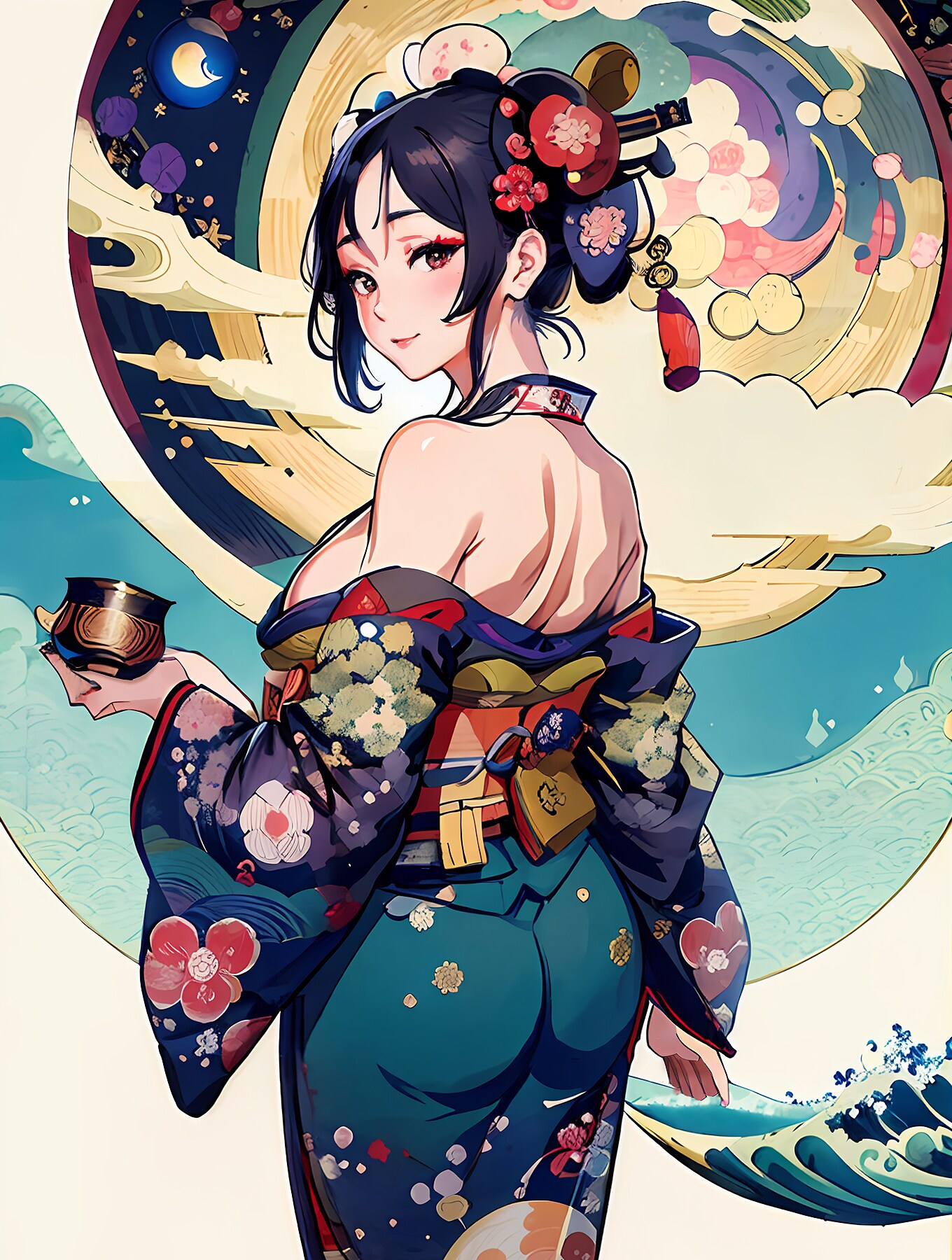 プロンプトではお猪口を持って月を見てるという風に書いてるんですが・・・・