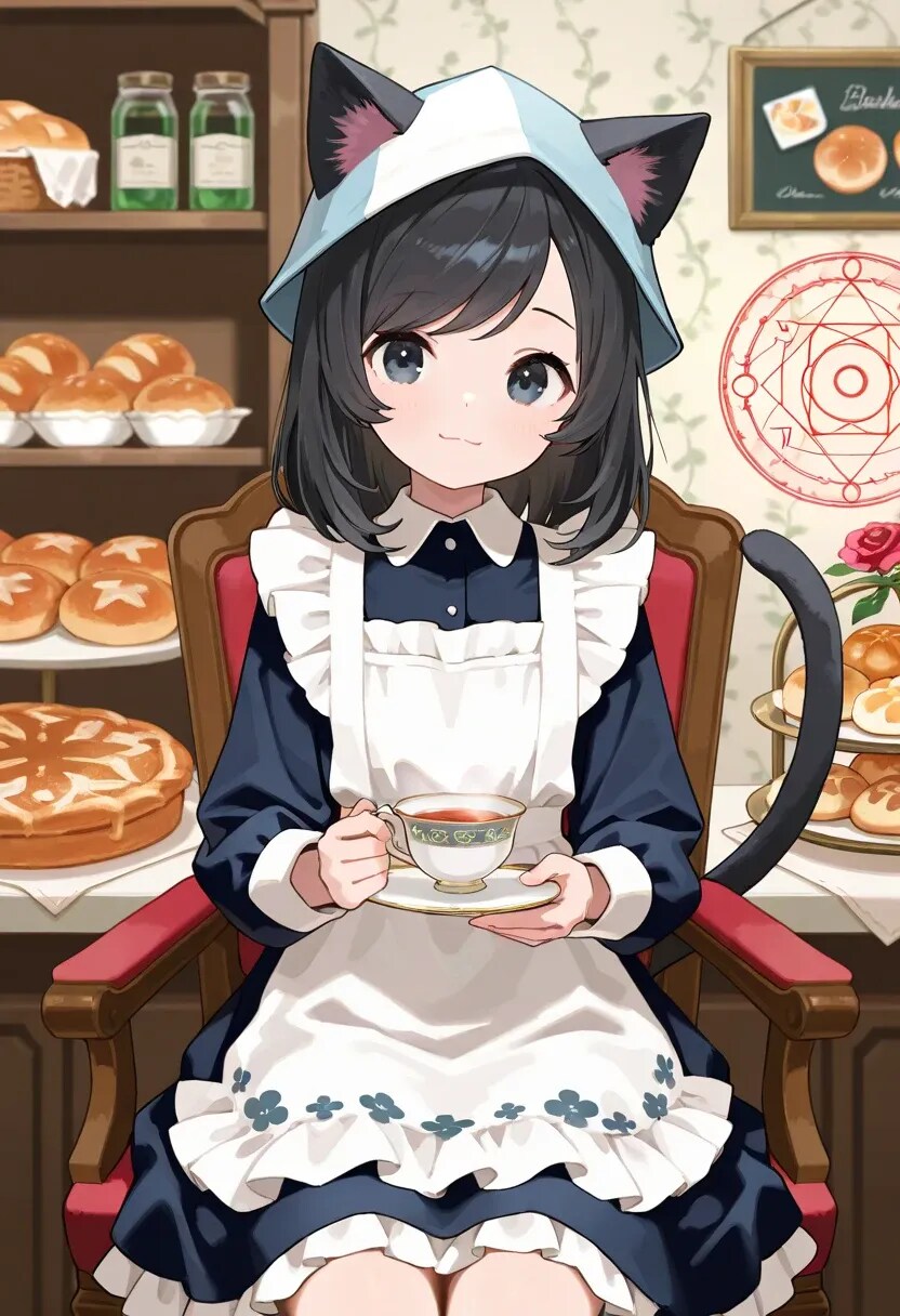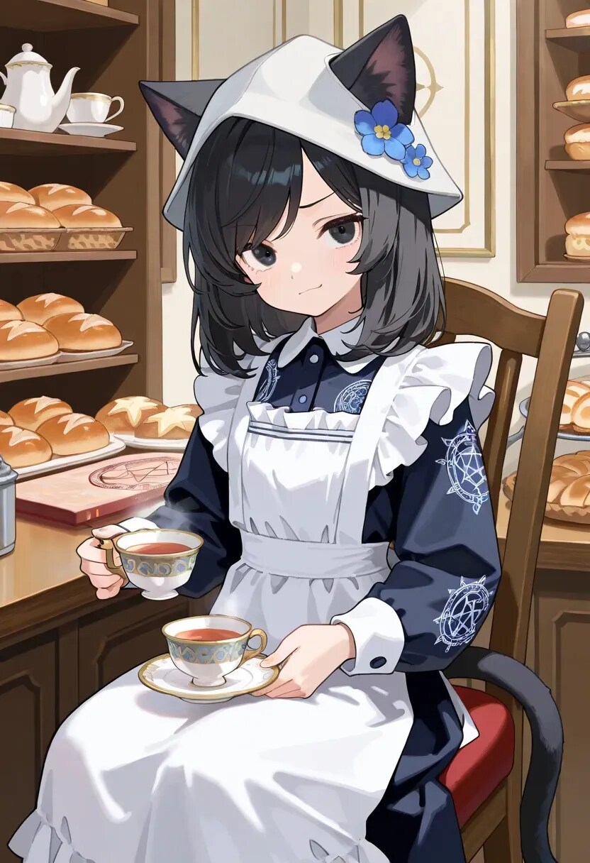 冥土ネコ、紅茶を飲みながらニヤニヤしつつ…