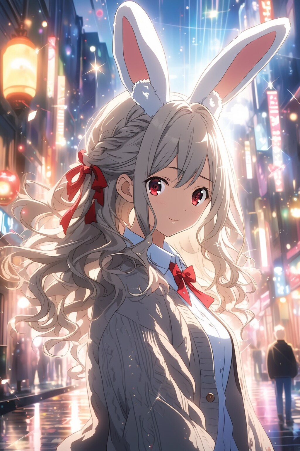 ・髪色と真っ白なうさ耳の色の違いが大きい→いつもwhite rabbit earsと色まで指定していたのを思い出し、色指定を消したら少し改善