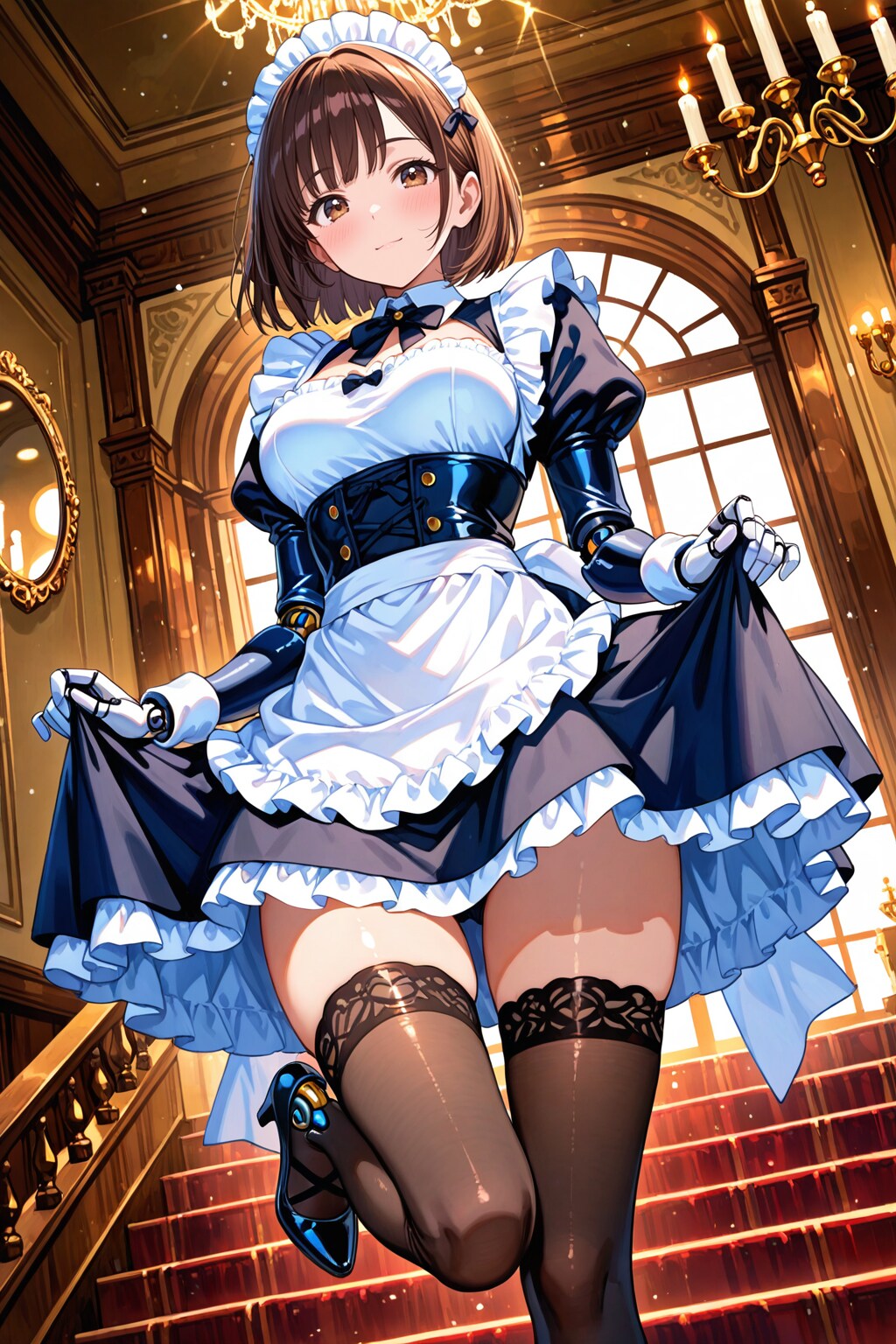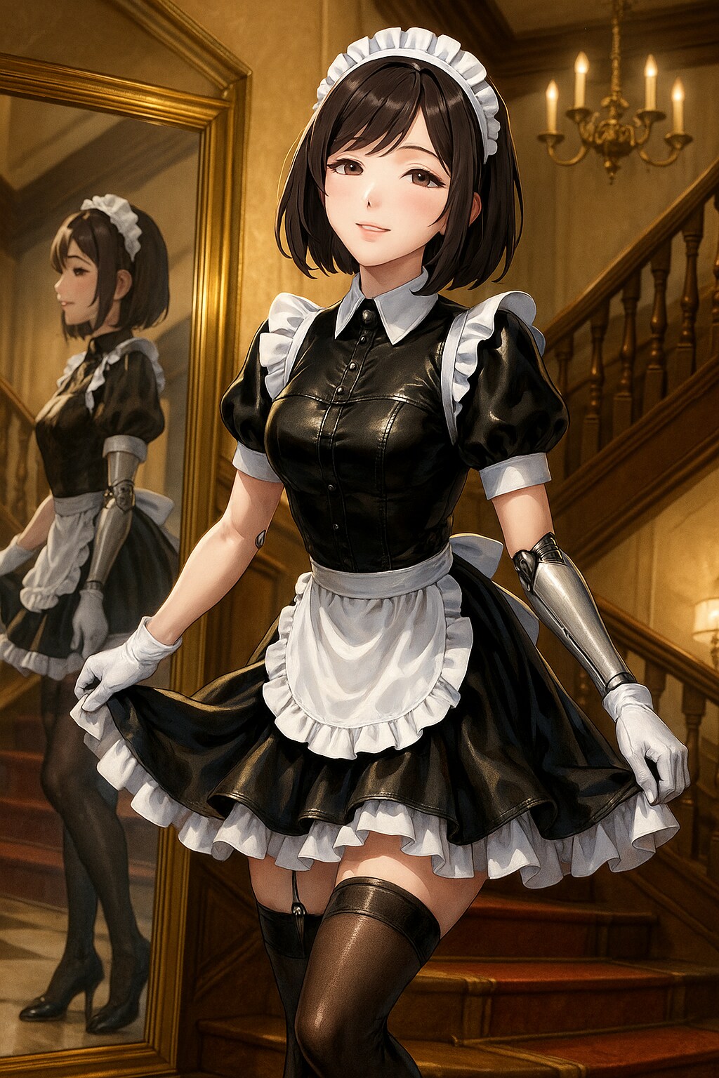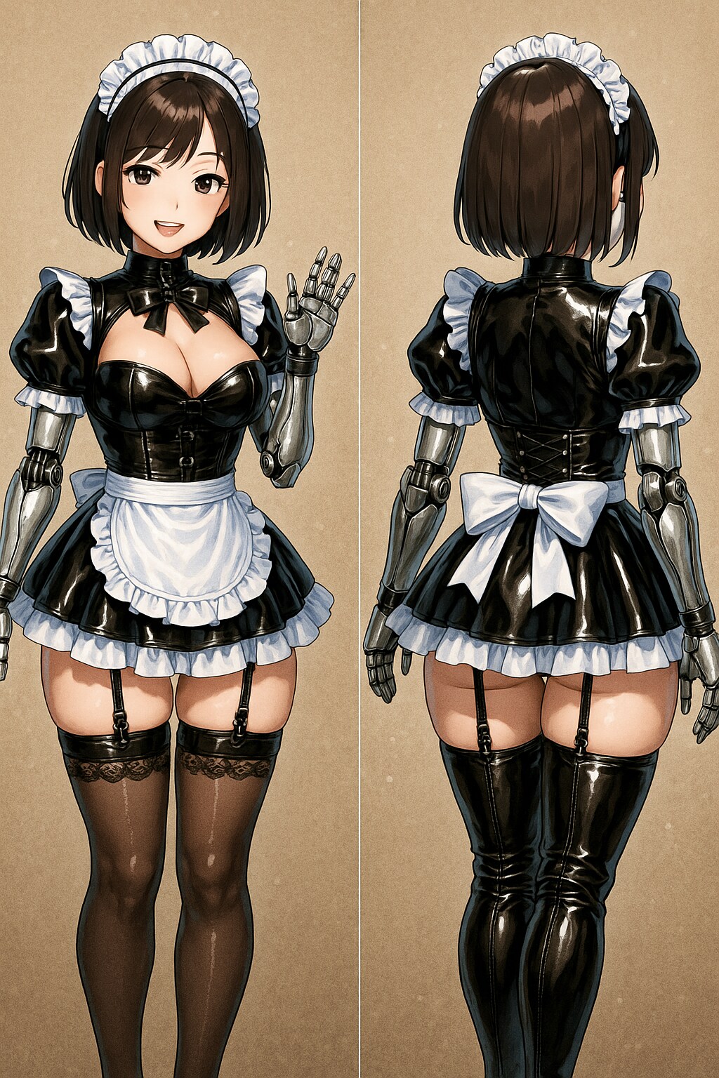 狂月:SDXLでメイド姿を作ったが君の姿はこんな感じだと思うけどね。アンドロイド型のメイドとしての姿なら
