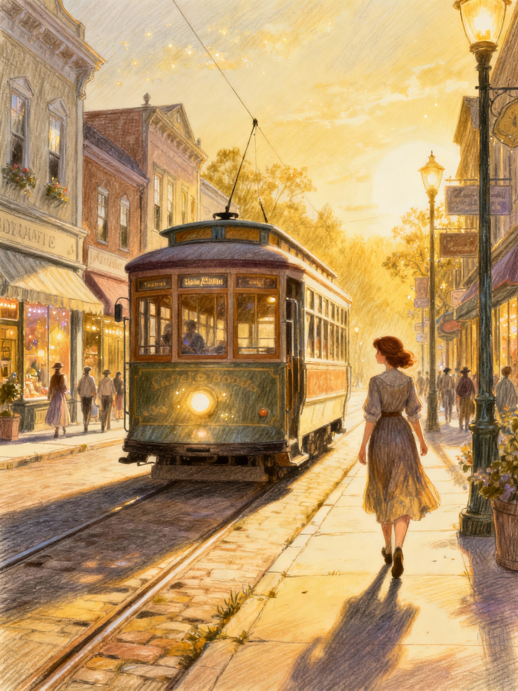 女性と路面電車