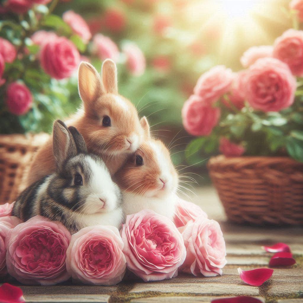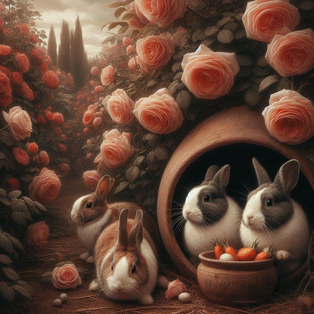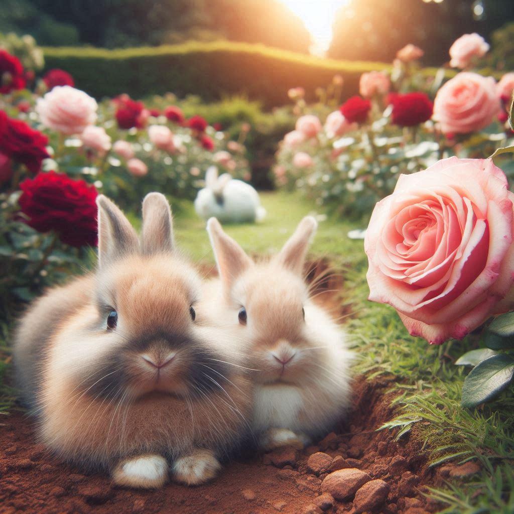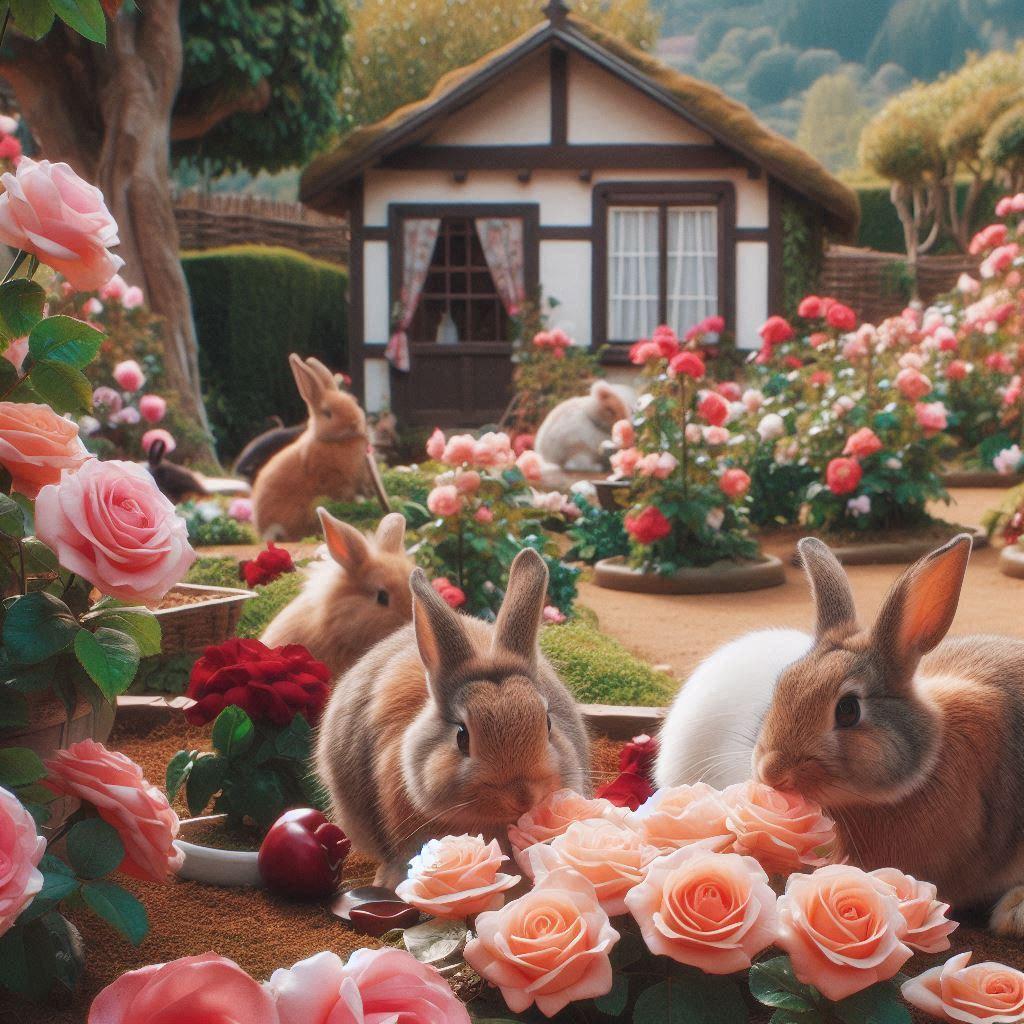 バラ園に住むウサギ