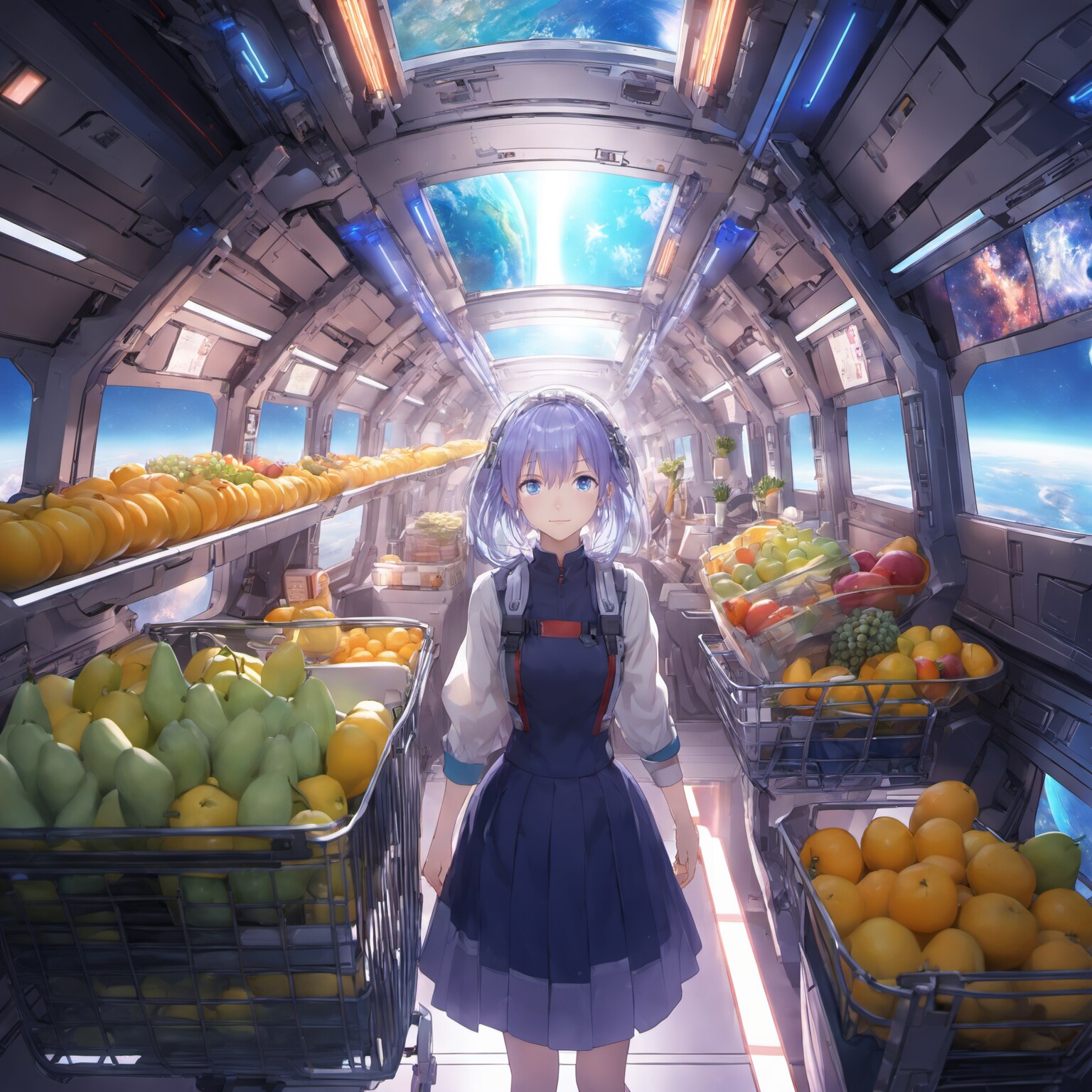 ここ星間連絡船内にある食料品店、新鮮な野菜と果物を販売しています。皆様もおひとついかがですか?