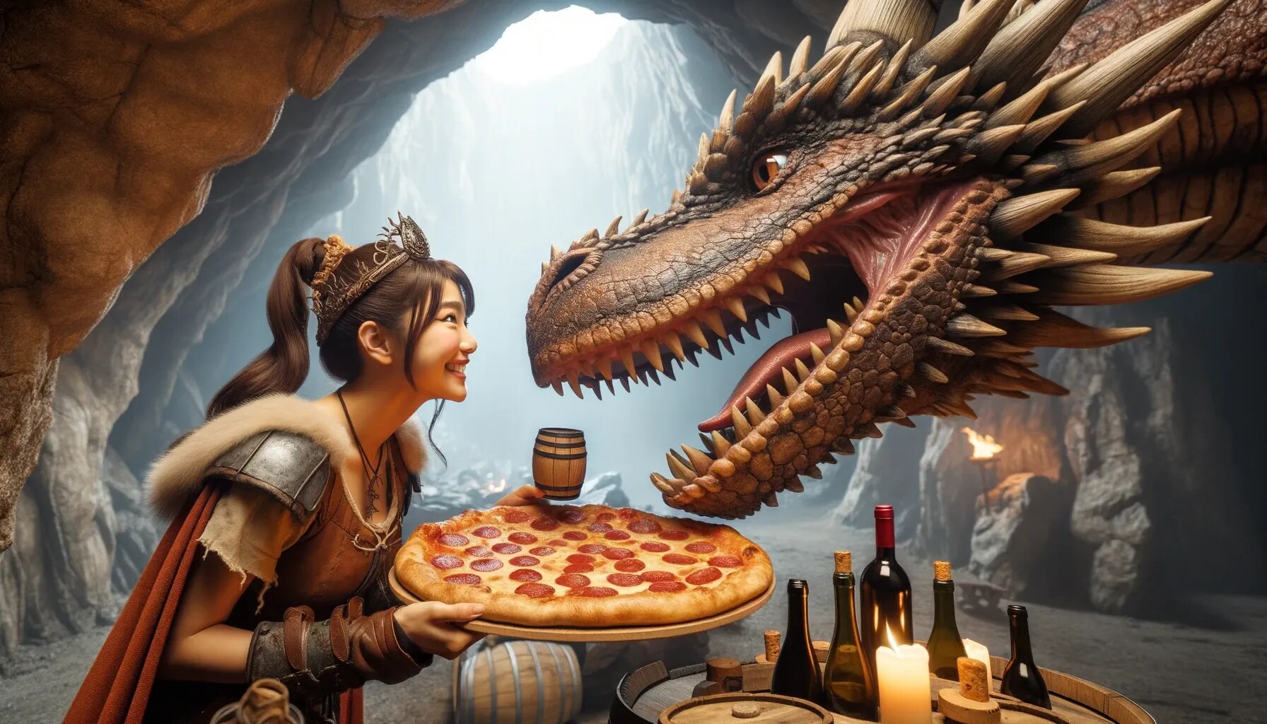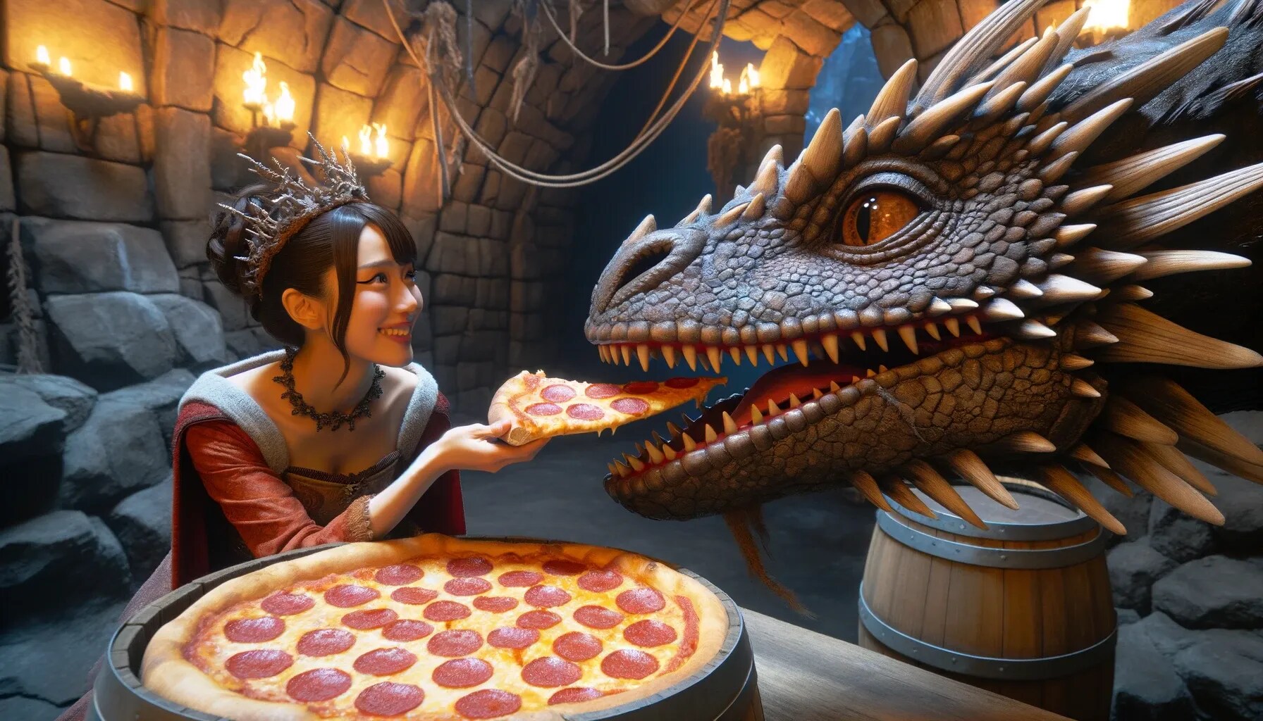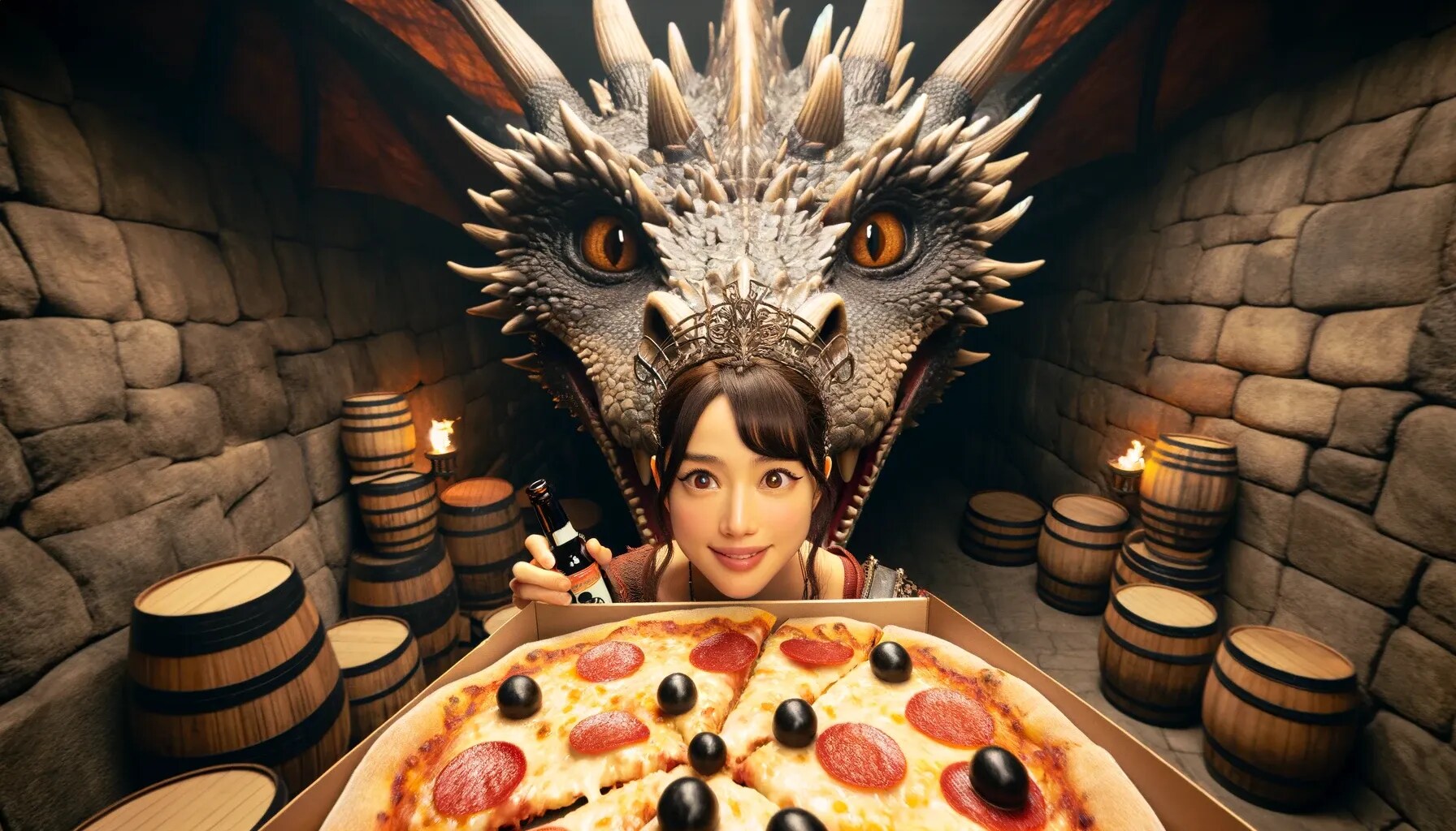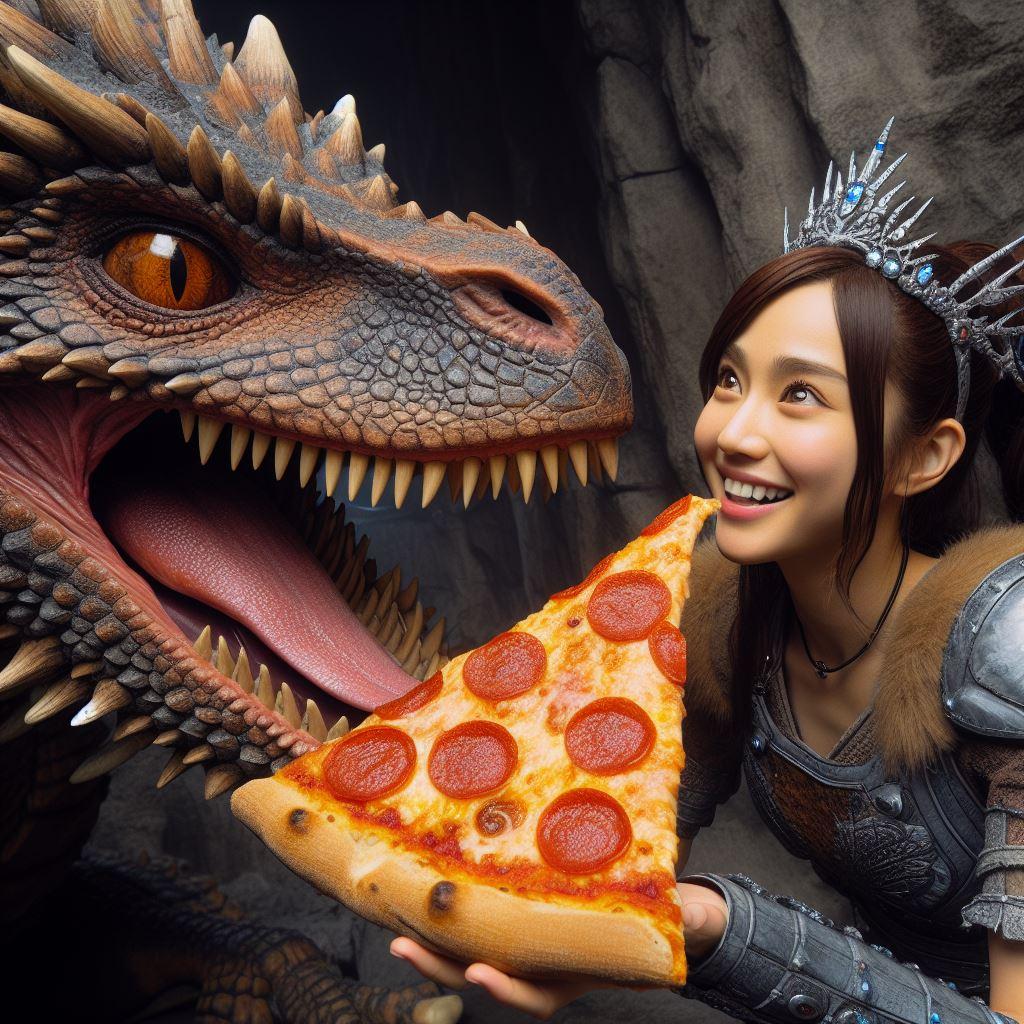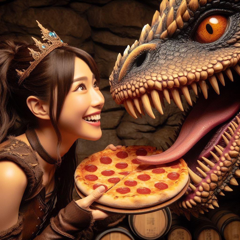 過去に投稿した作品からドラゴンを食べるピザを思い起こしました。