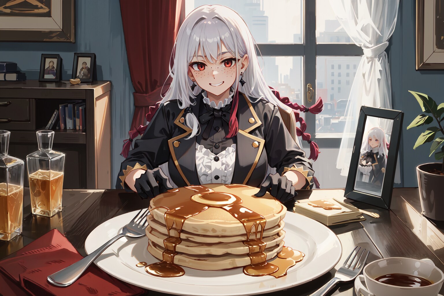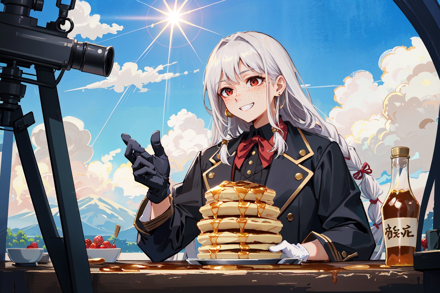蠅の王様は蜂蜜研究部に興味を持ったようです。カメラ呼んで何かPR活動までしてますね。甘党のベルゼビュートはホットケーキが好きなようです。ああ、手で食べたらべったべたになってしまう…
