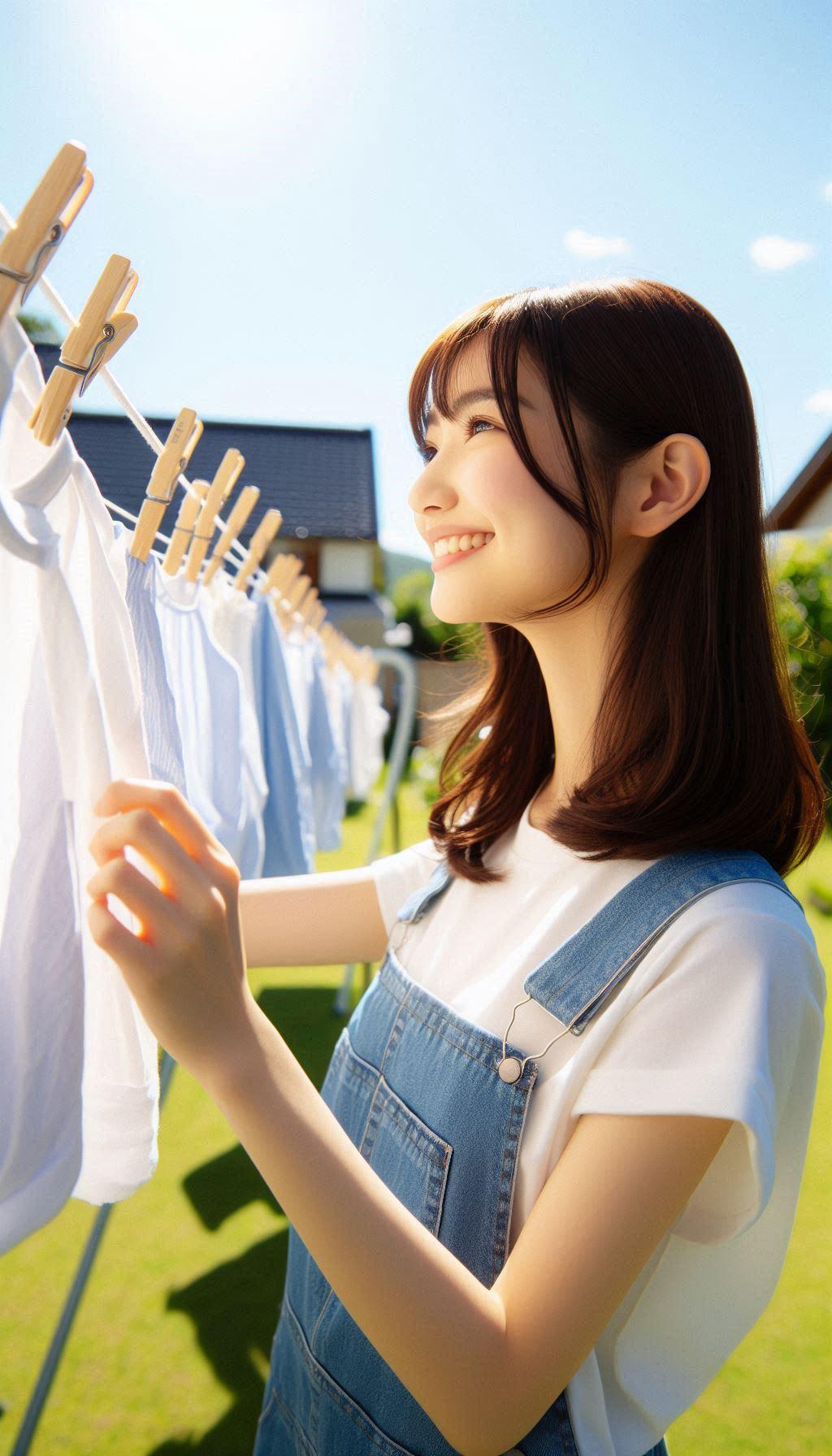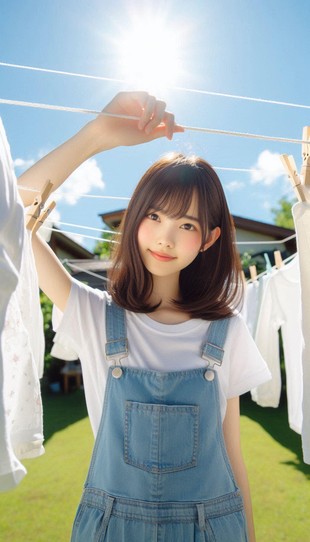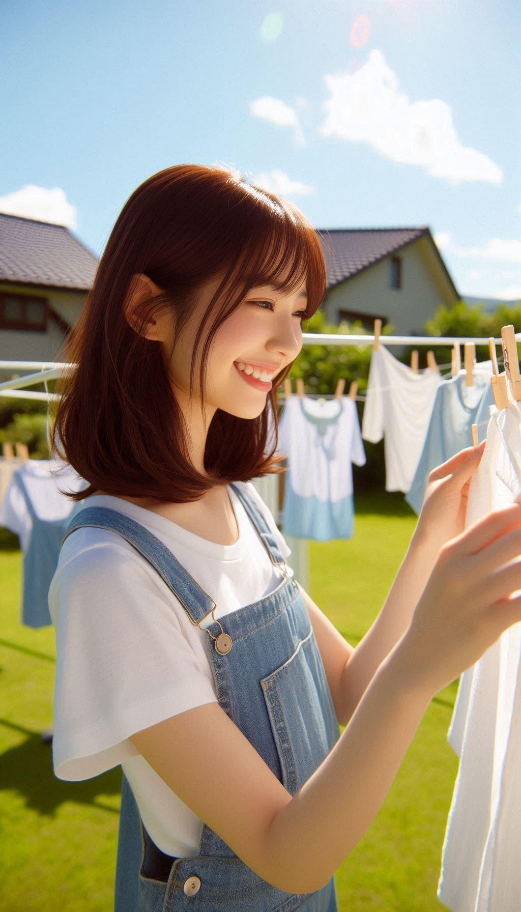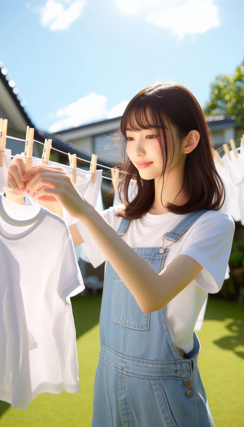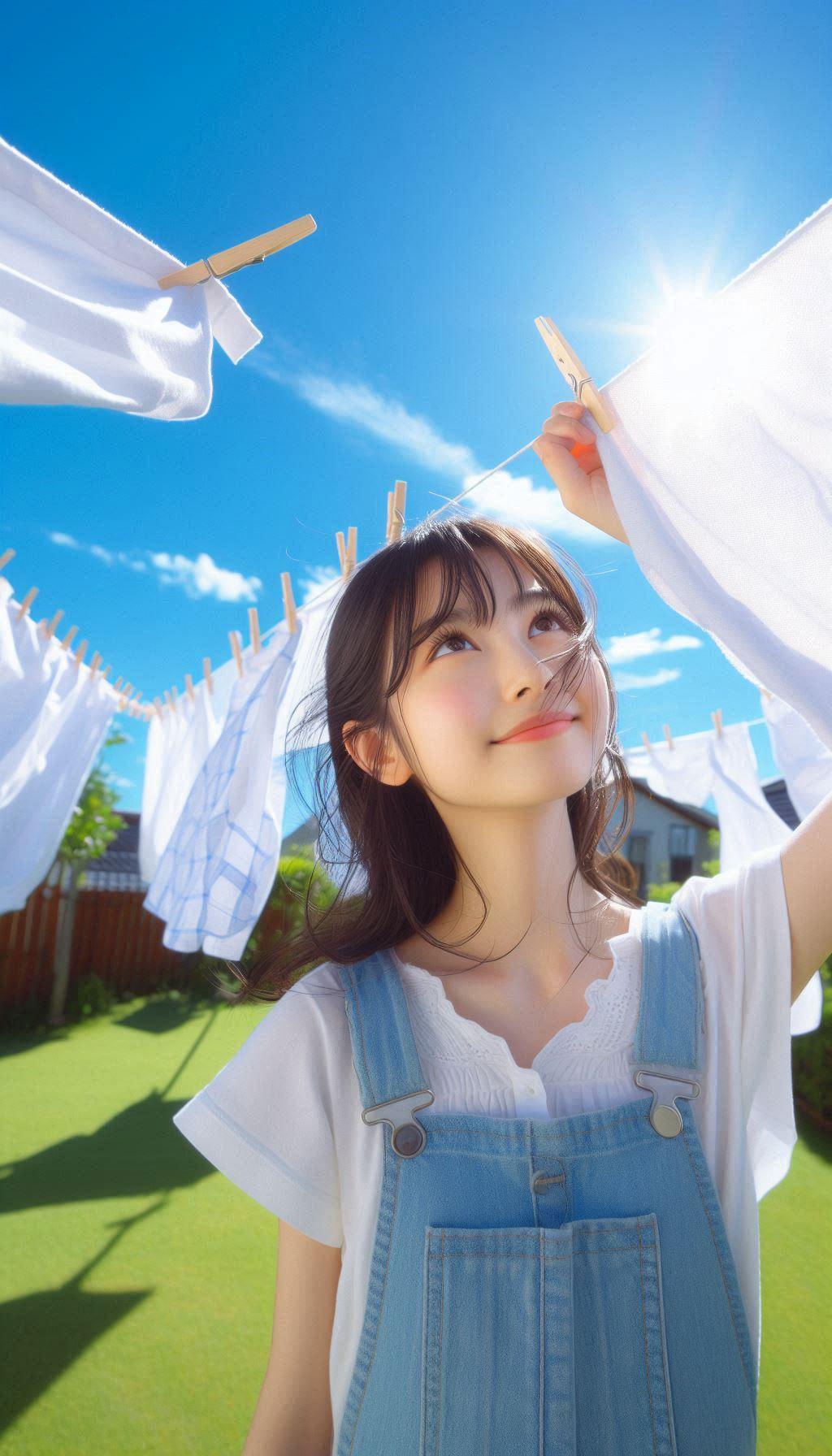 お題が青空と太陽だったので何をやらせるか悩んだわりには結果が洗濯物干しでした