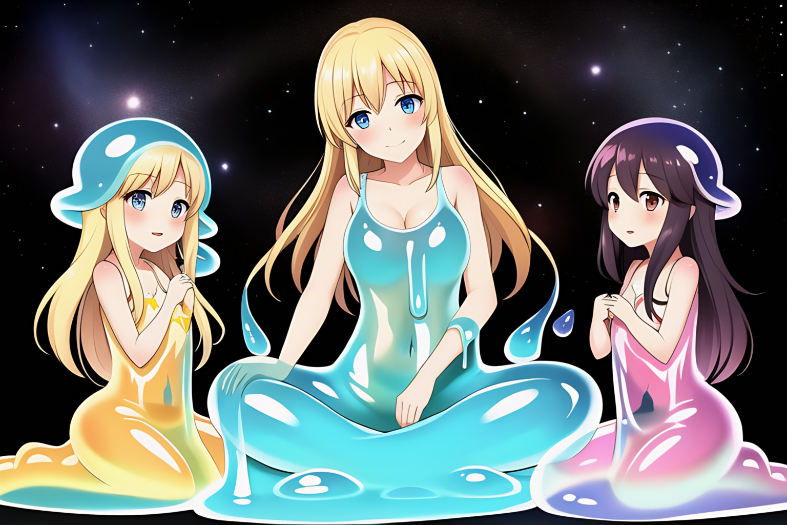 3枚目 cel-shading , lotus position,sitting , in main street , Slime ,