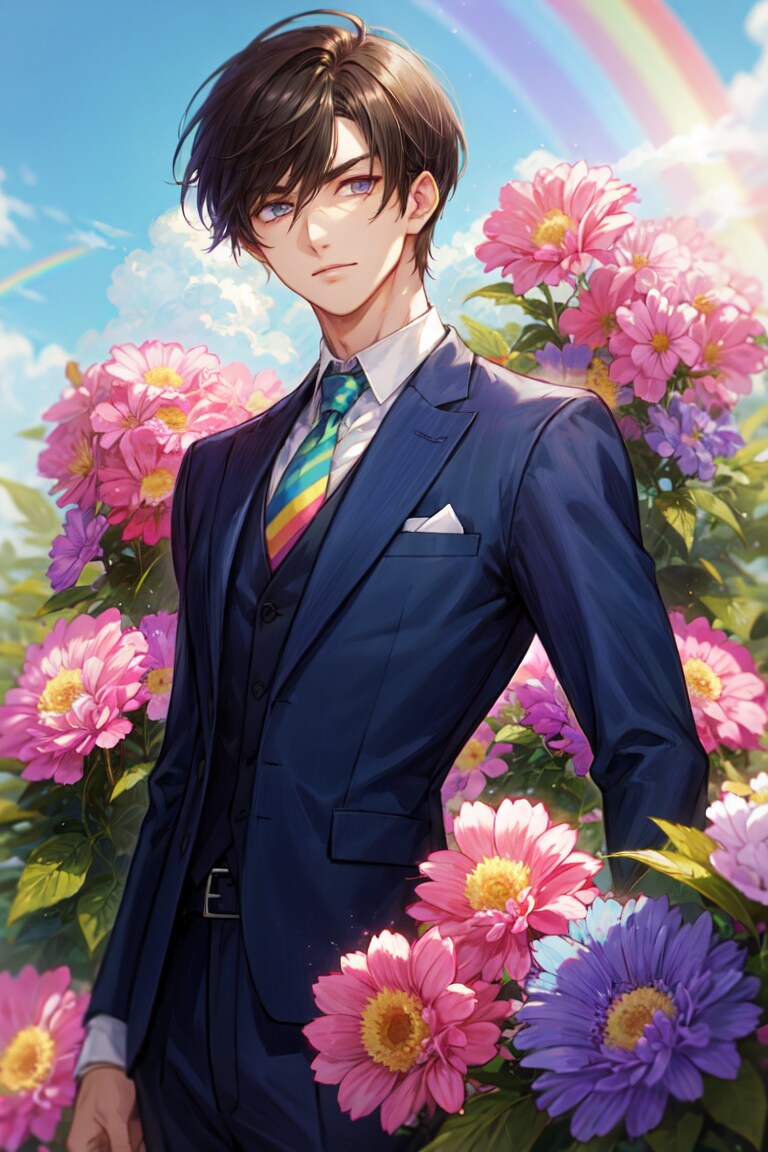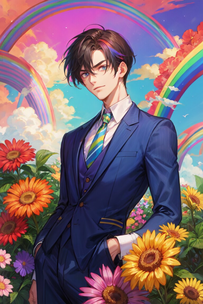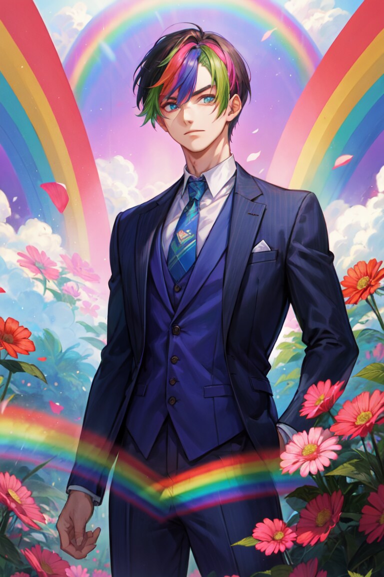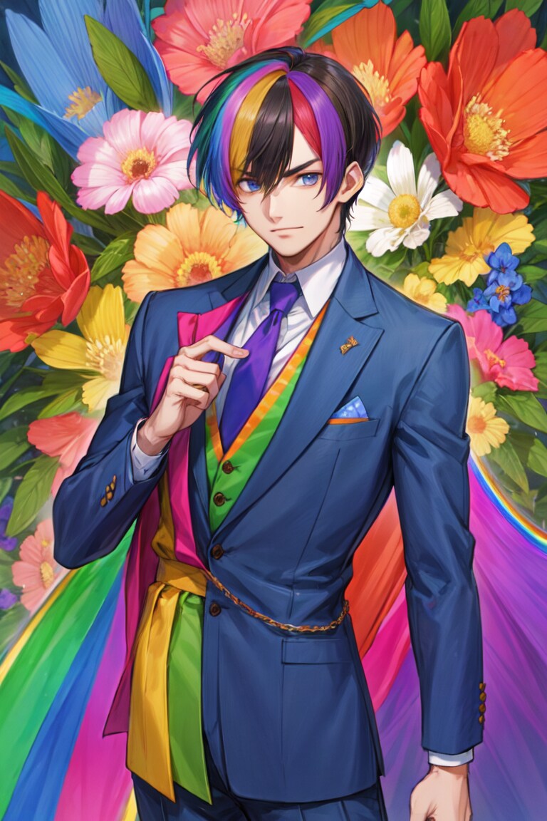 またカラフルお題の時は、なかなか思うように髪をカラフルにできなかったので、その再挑戦!も兼ねて、その時と同プロンプトで作成しました。そのためやたらカラフル&レインボーです。