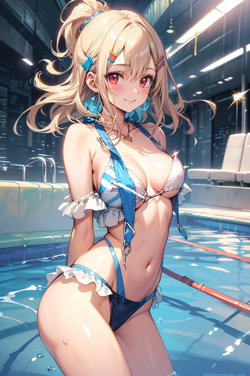 5枚目(ストレングス値=0.65):窓が消えるなど部屋の構造が変わる…水着も崩壊。水面は一番きれいな気がする
