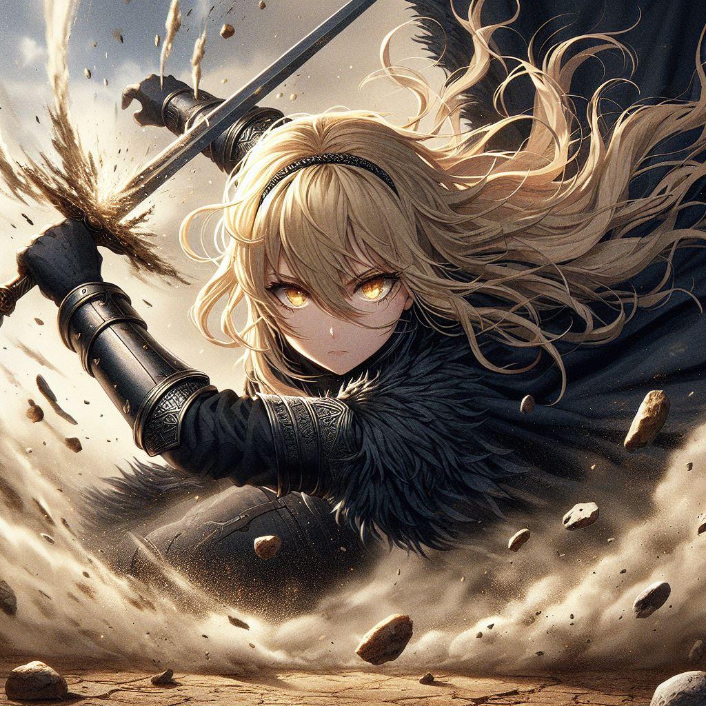 今まさに剣を振り抜こうする瞬間と土煙と石粒で躍動感を感じられたら嬉しいです( ´∀`)bグッ!