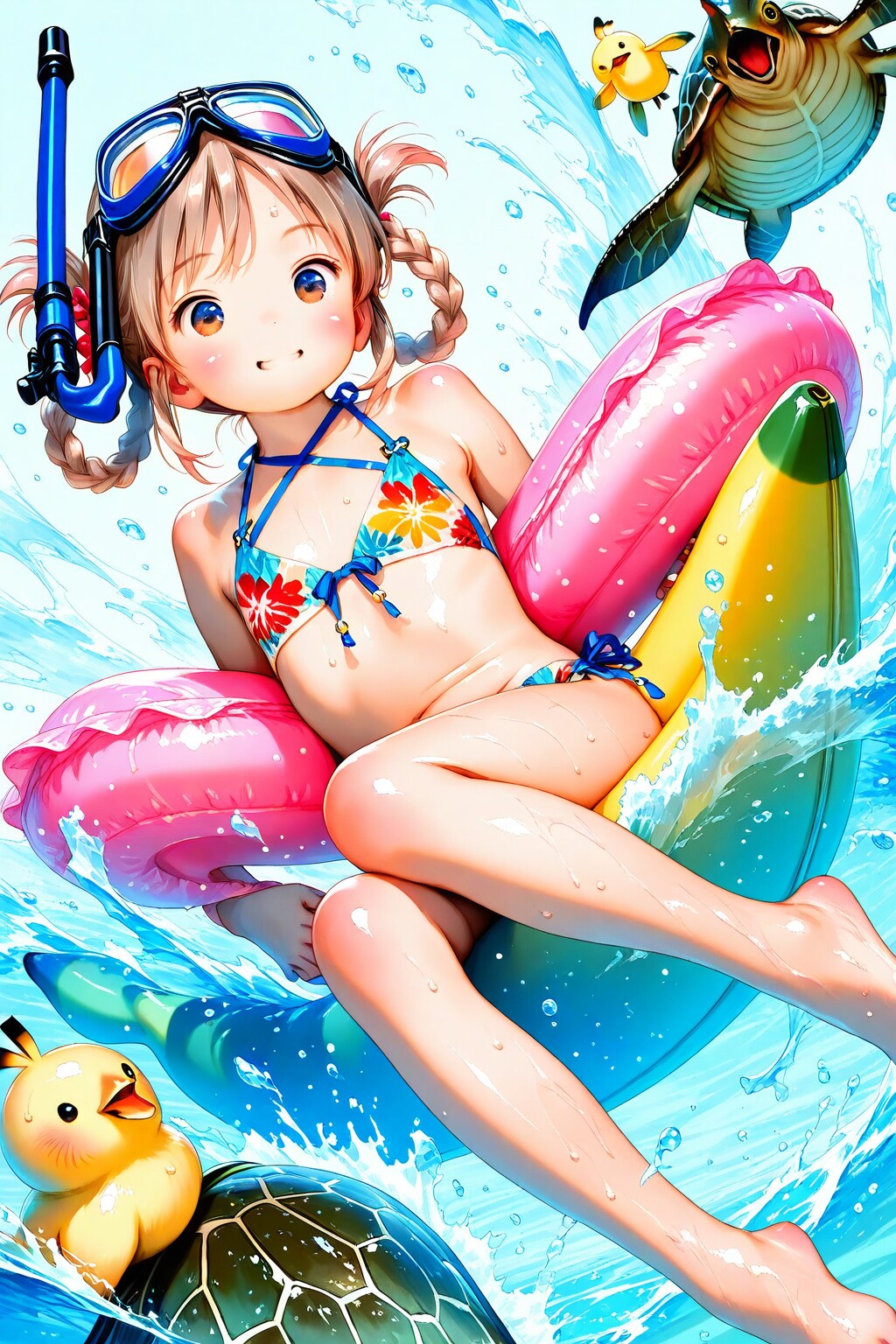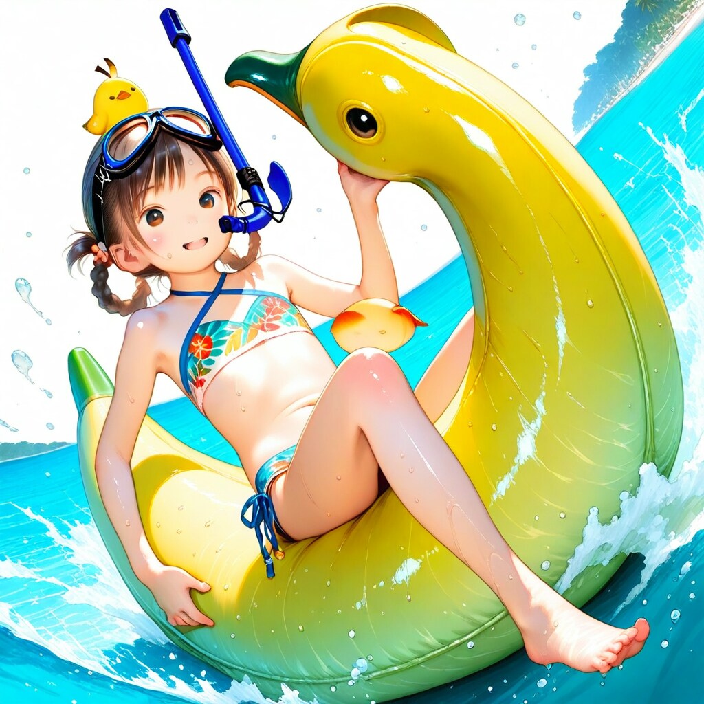 去年までは、ちち生で巧く浮き輪やフロートに乗れなかったので、モデルの進化も感じます