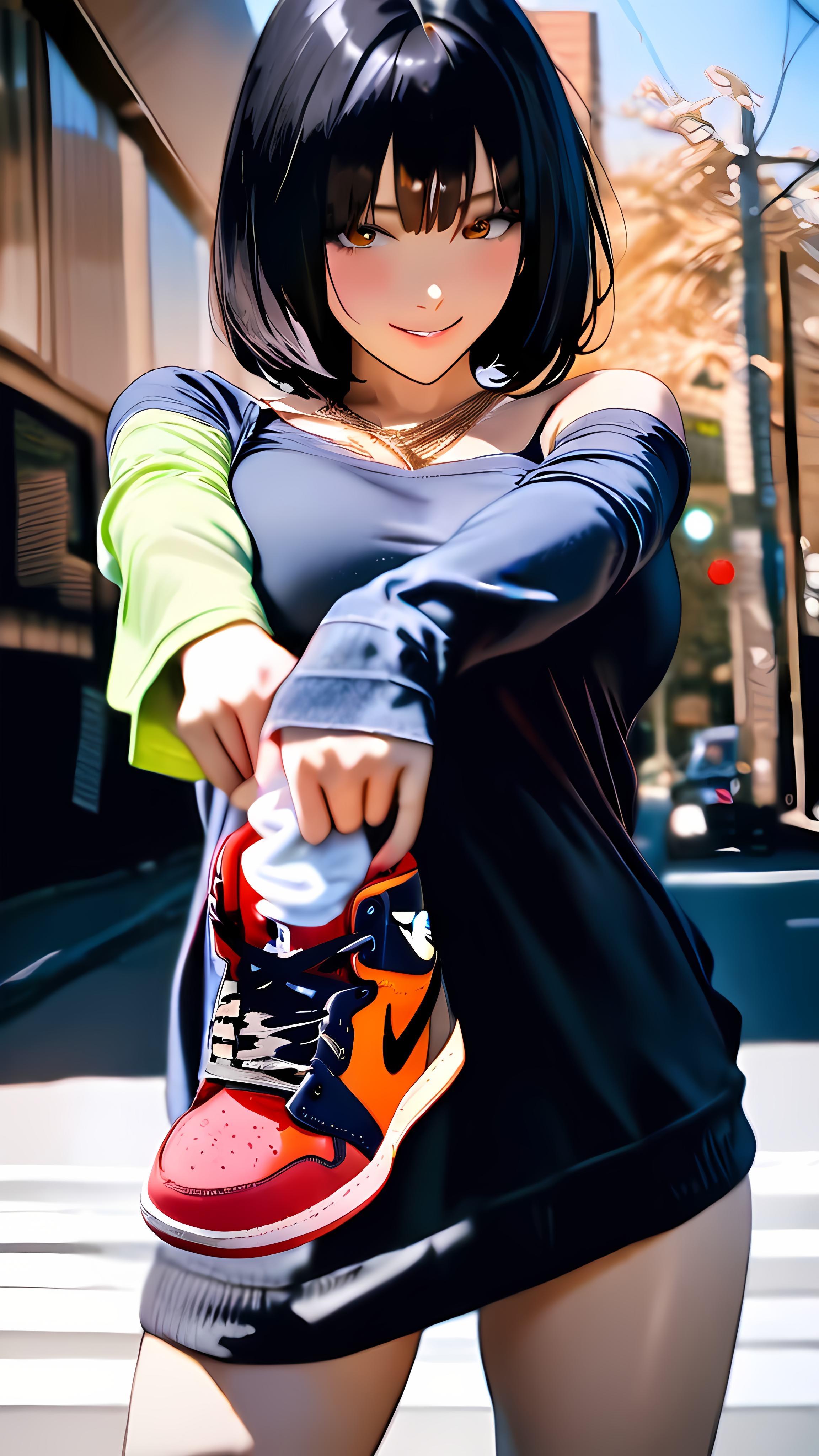 なぜか靴下と靴の匂いを嗅がせようとしてくる女子に街中で出会った。そんな一枚。