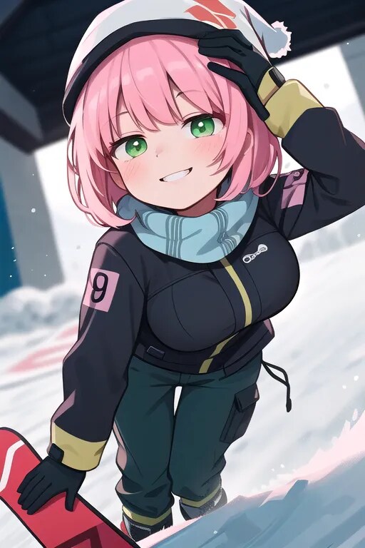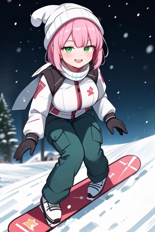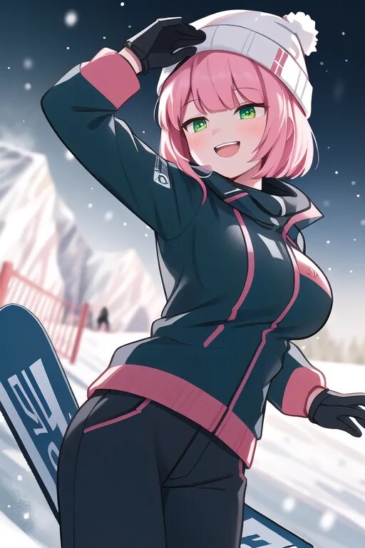 お題「ウィンタースポーツ」で作成したピンクちゃんです。