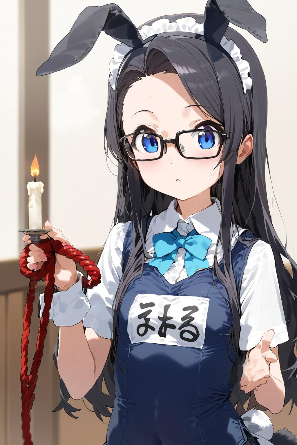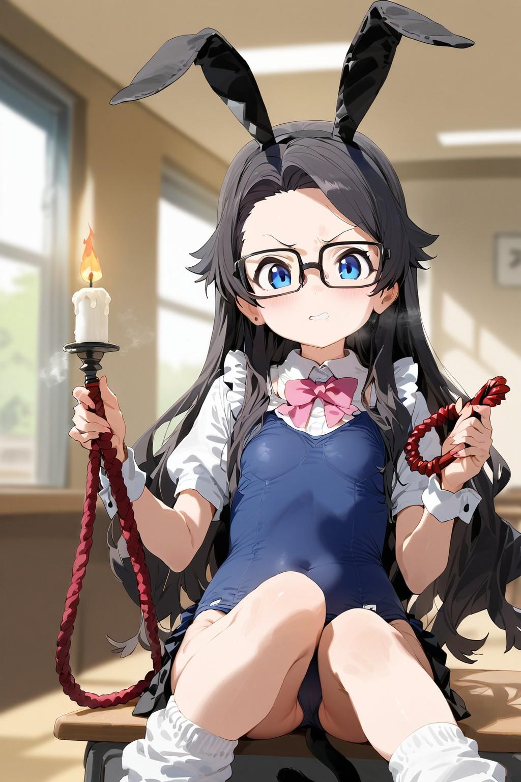 鞭とロウソクを持ったツインテールの小さな女の子