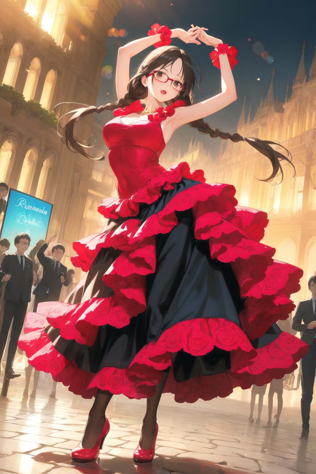 しおりさんのスペインの街並みの中で踊るフラメンコの風景になります。この投稿も前に投稿したしおりさんのフラメンコ姿の再生成に近いです。最近は衣装に強さを見せるモデルが増えたので再度作ってみたい題材も多いですね。また、フラメンコは全身を入れるべきダンスでもあるので見栄えのするスタイルしおりさんにはぴったりです。