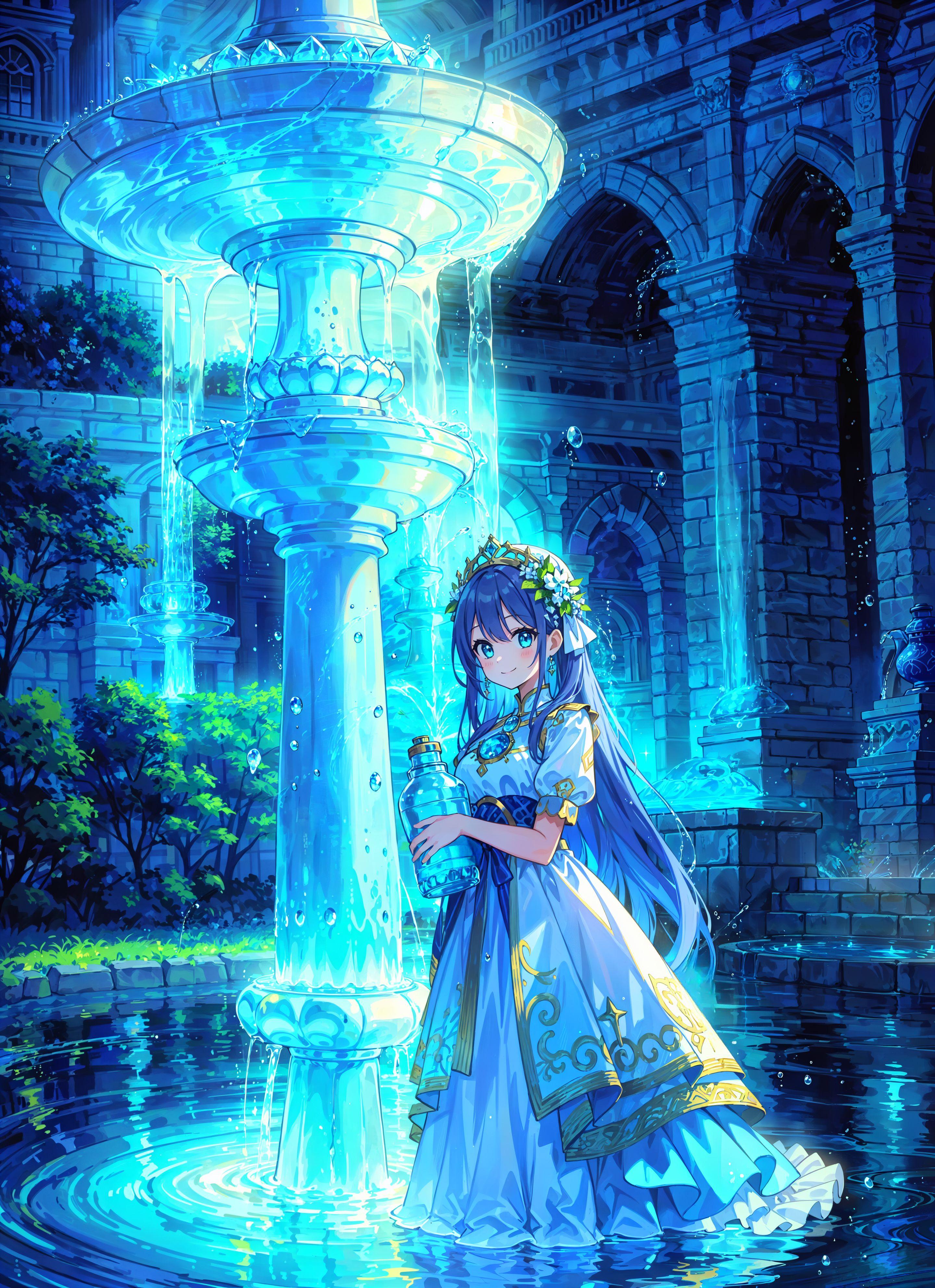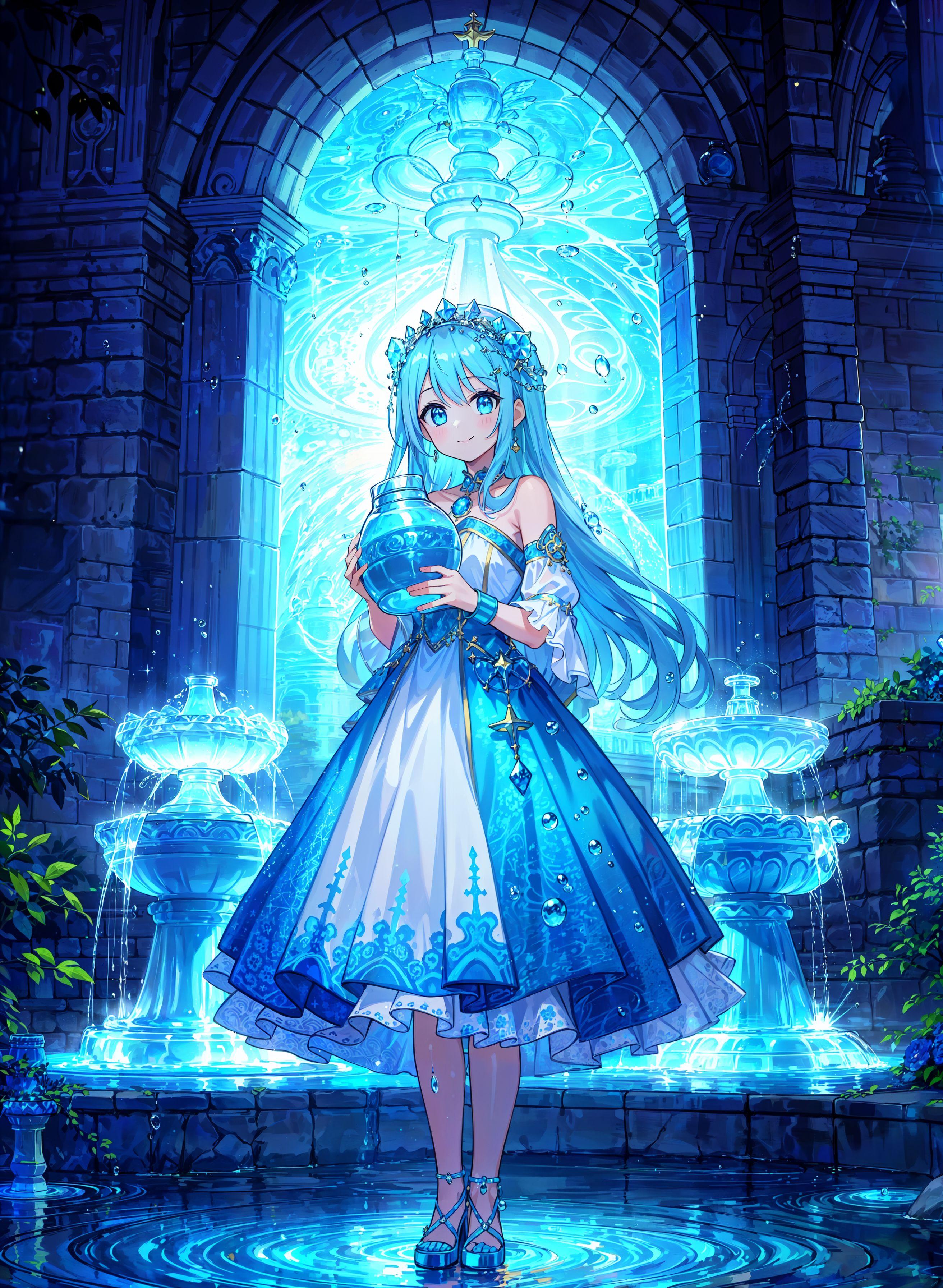 噴水の泉の前で佇むアクエリアス(水の精)をつくってみました。