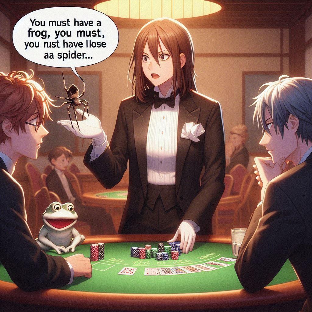6枚目以降はボツ画像で、6枚目は珍しくかえるんとクモが一緒に出てる