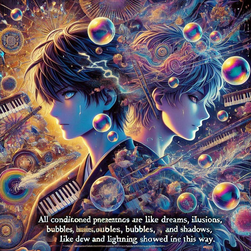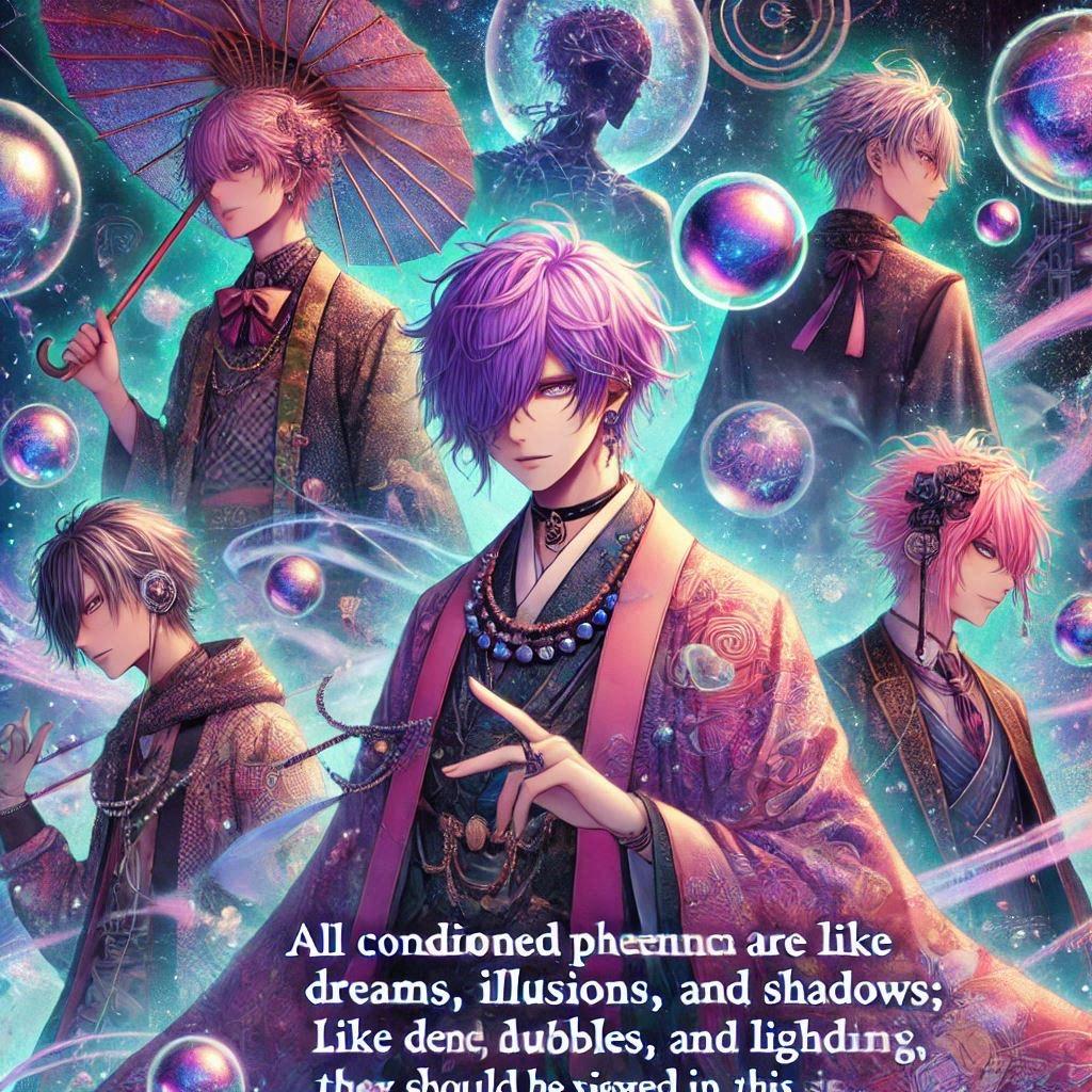 「一切有為法 如夢幻泡影 如露亦如電 應作如是観(いっさいのういのほう むげんほうようのごとし つゆのごとくまたかみなりのごとく まさにかくのごときかんをなすべし)」は、仏教の経典である『金剛般若波羅蜜経』(金剛経)の一節です。