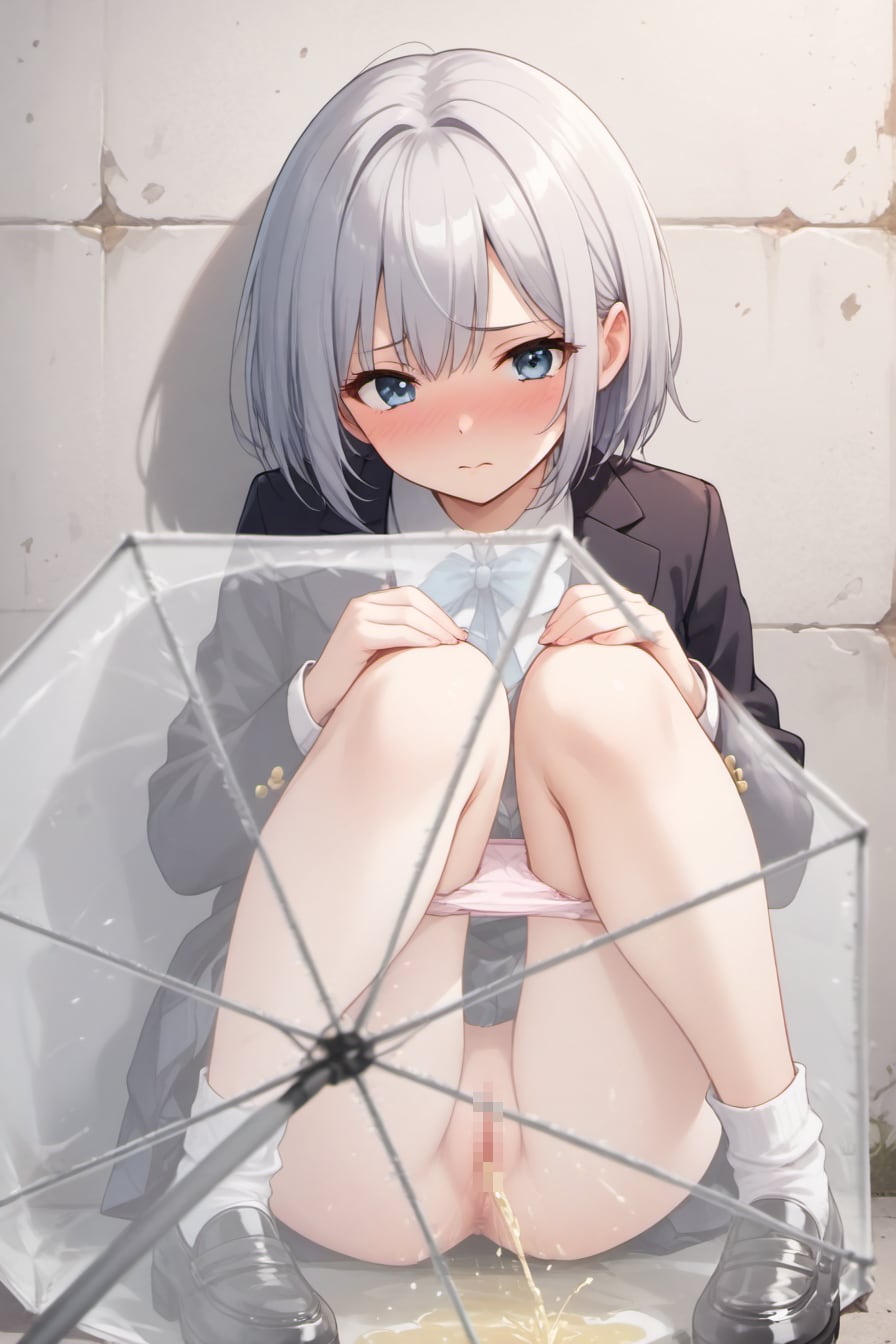 傘に隠れて