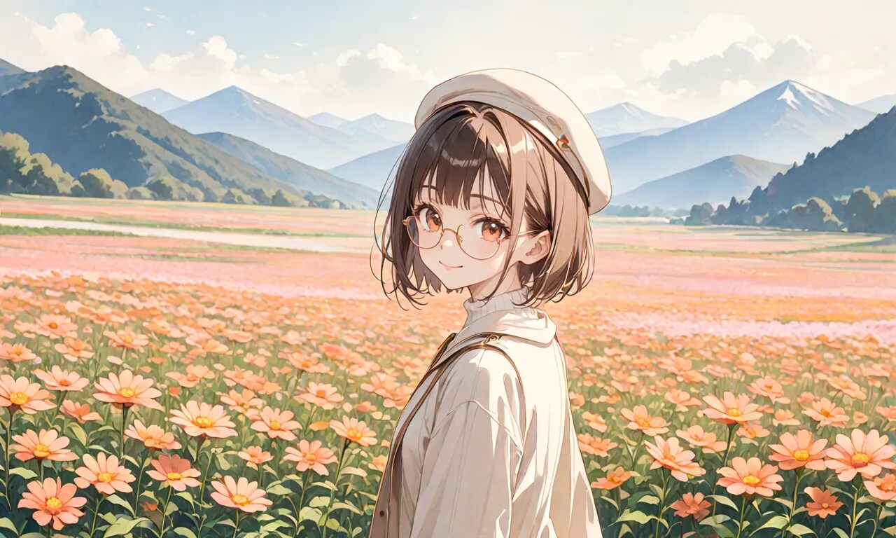 2枚目は帽子をベレー帽にしてメガネを追加です。
