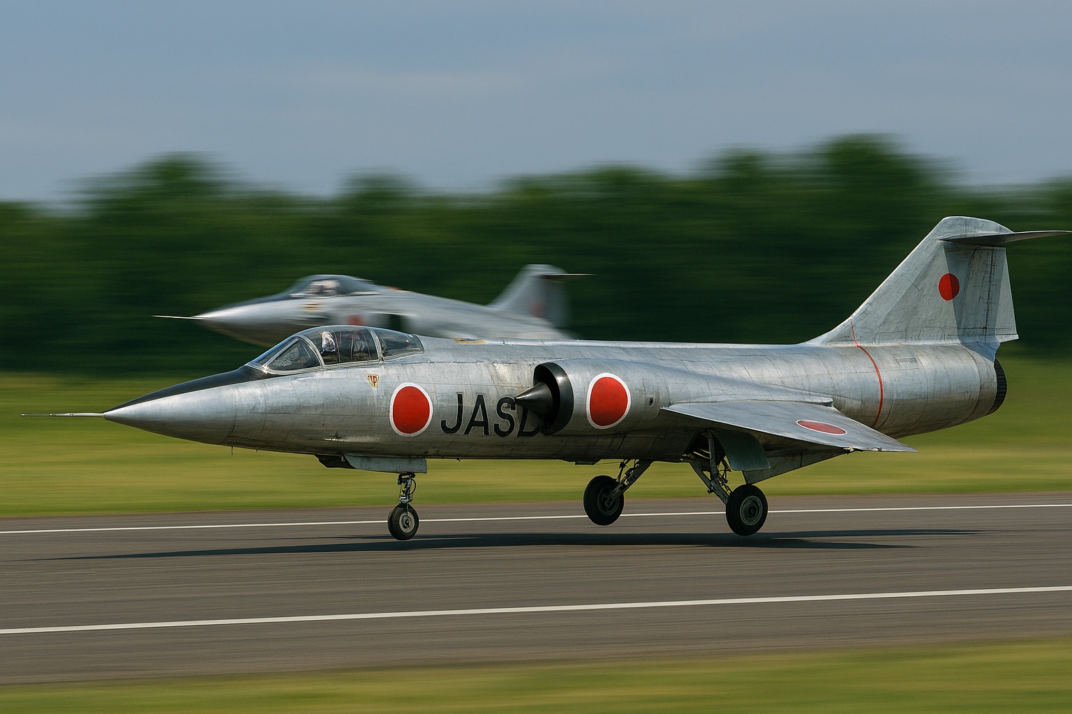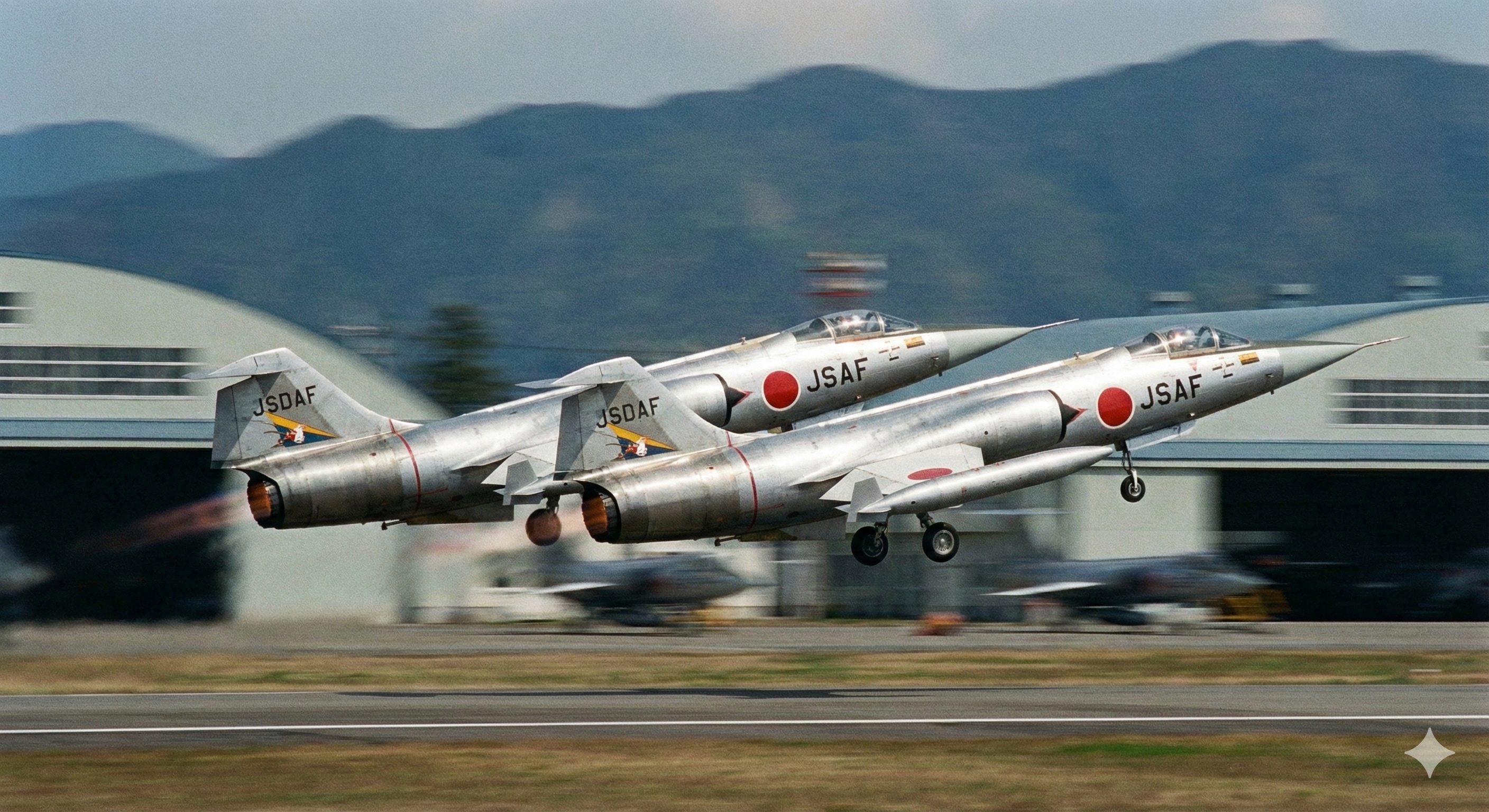 【お試し生成】F-104J スターファイター( 栄光 ) のスクランブル離陸シーン。
