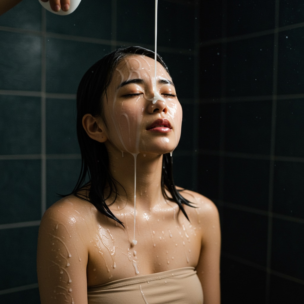 上からじゃなくて顔に掛かって垂れているのが良いんですがそうはなってくれないんですよね~…。