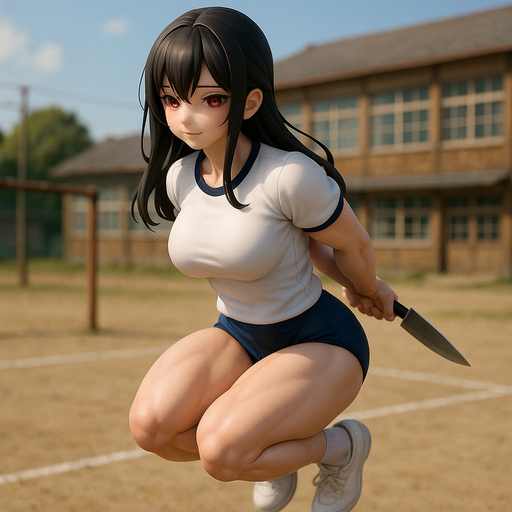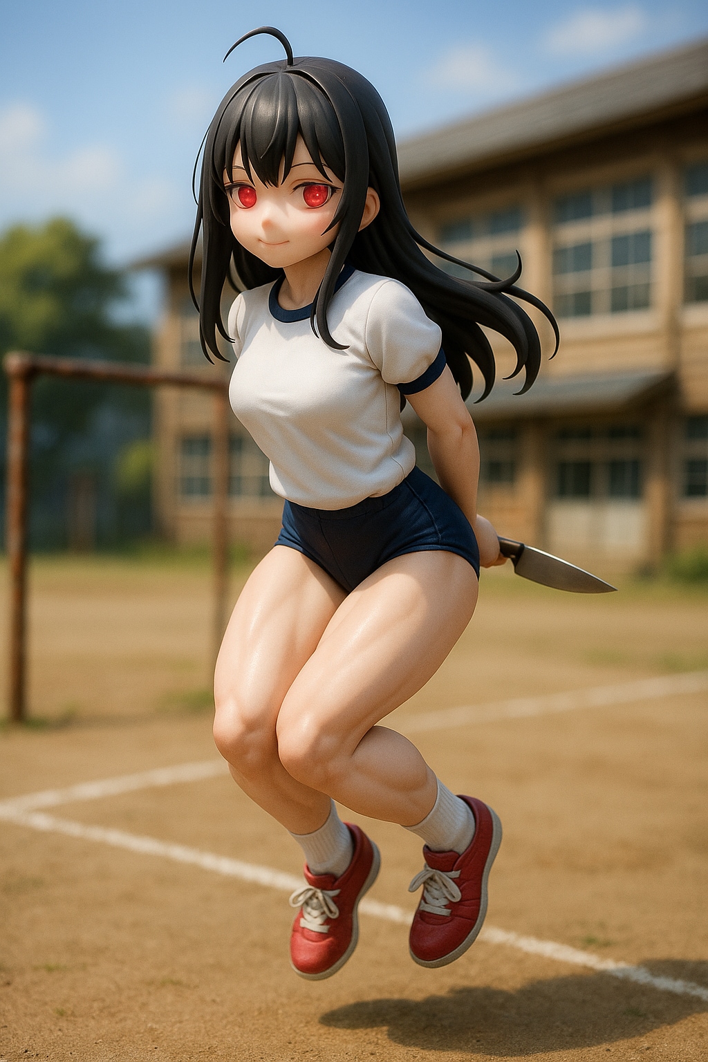 ウサギ跳びしている闇のありそうな少女のフィギュアイラスト