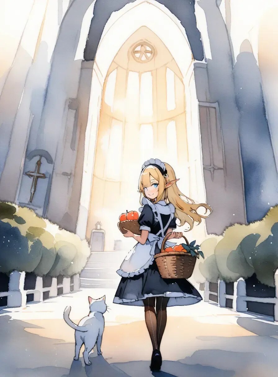 水彩画風エルフメイド2