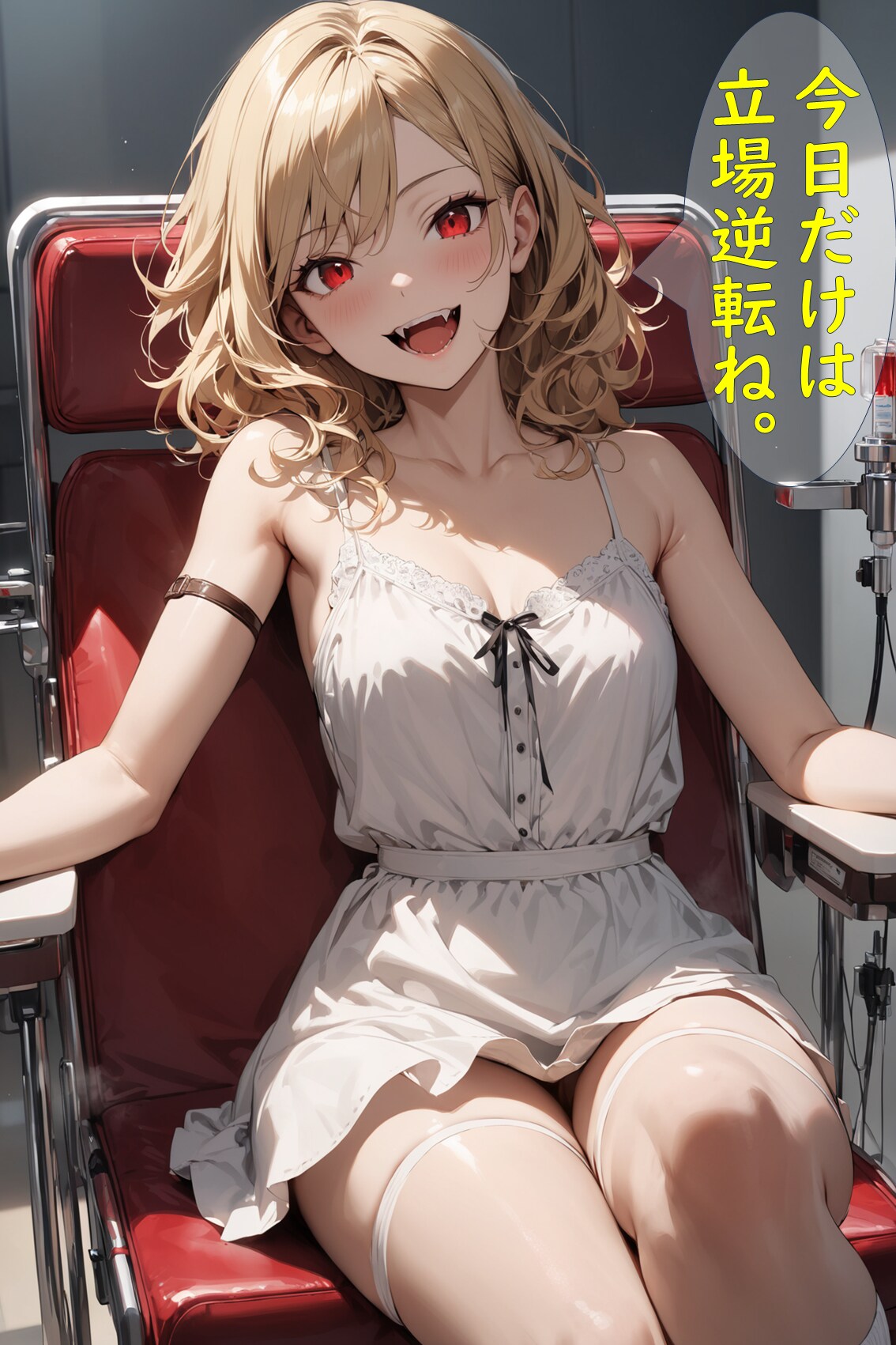 献血の呼びかけに、今日だけはと素直に応じる吸血姫ちゃんです。
