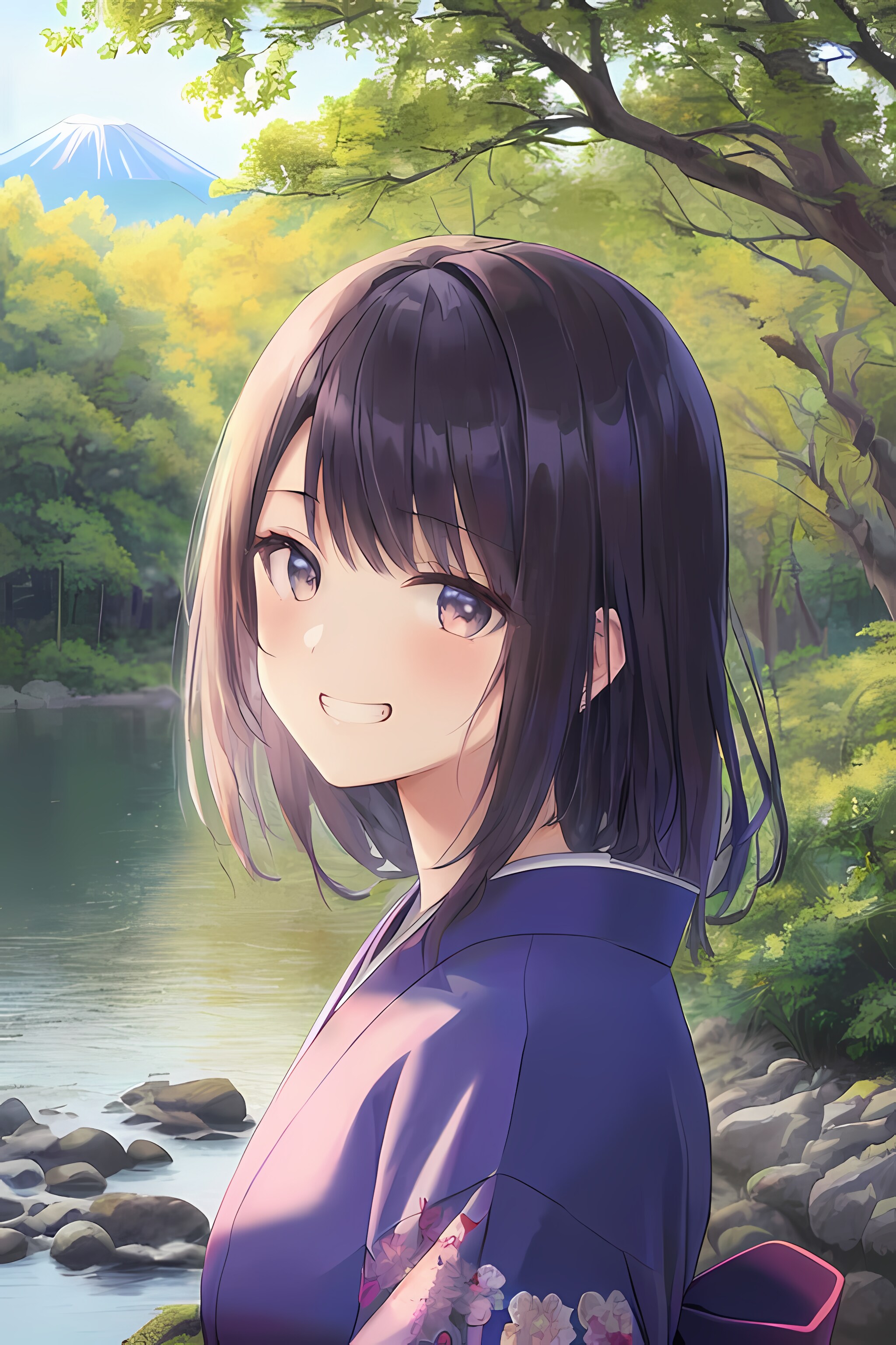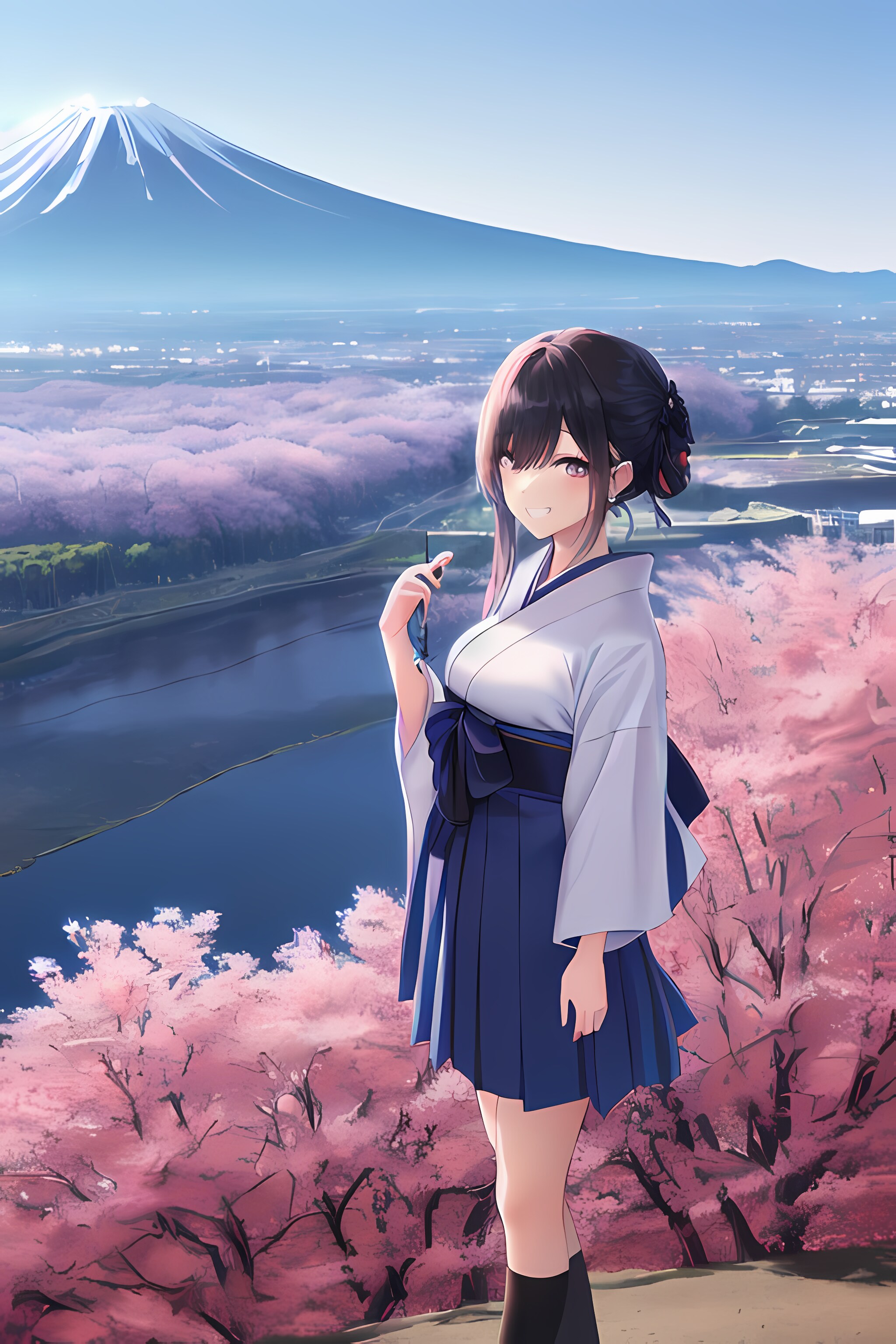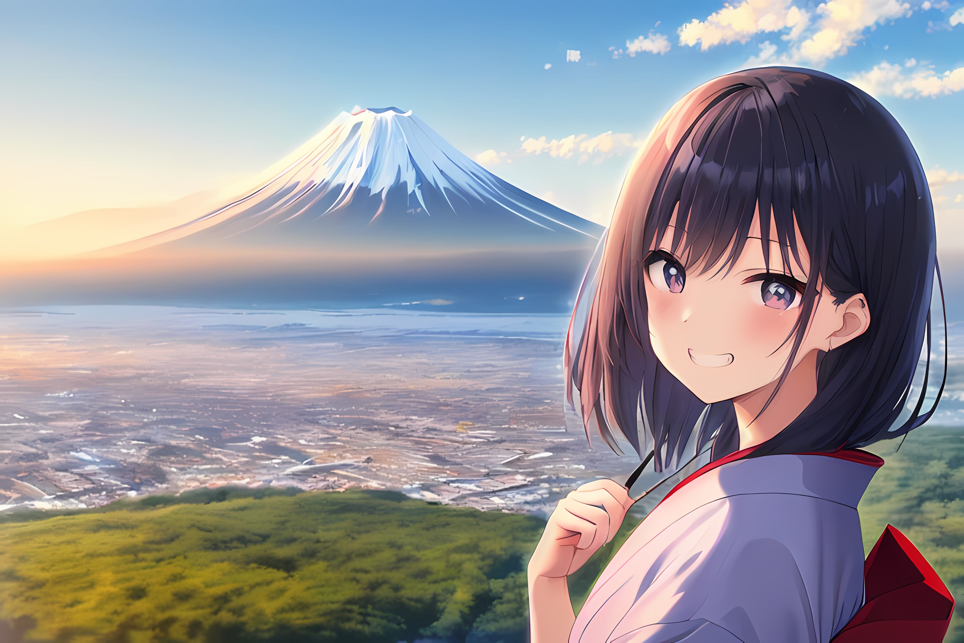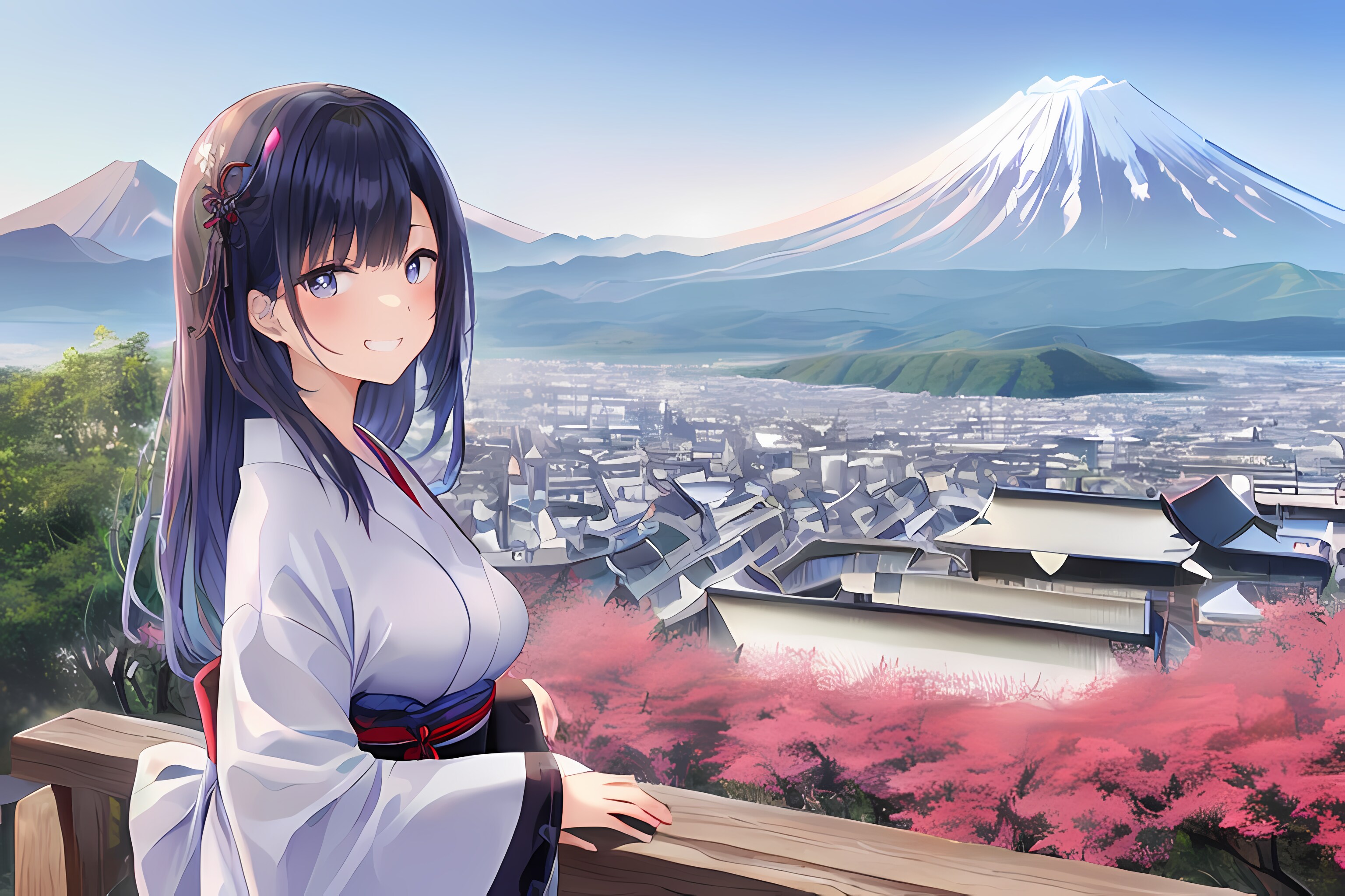 日本風景と少女