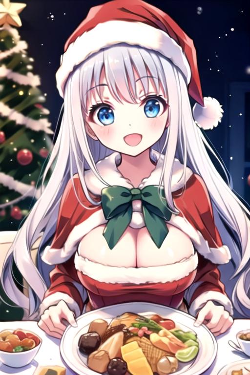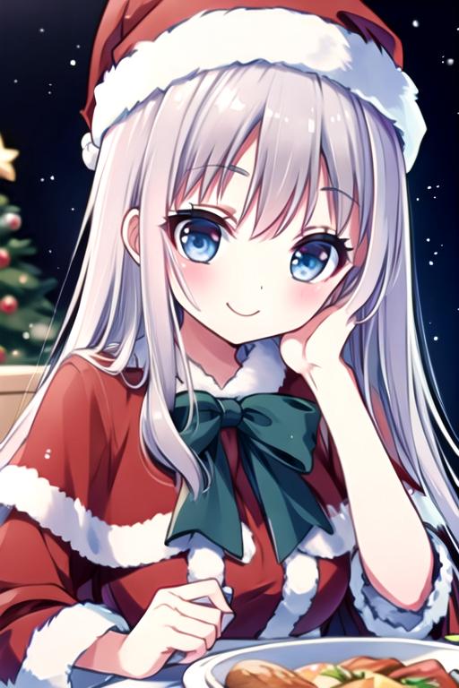 2日くらいかけてイブの夕方に上げようと準備していました。白髪ちゃんの傍に謎の雪だるま?