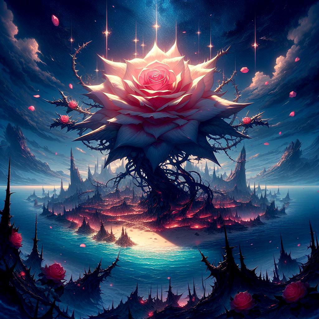 数年前...巨大な薔薇のような植物の花が、その島に咲いた。