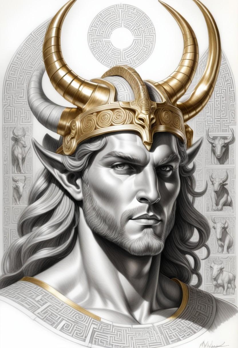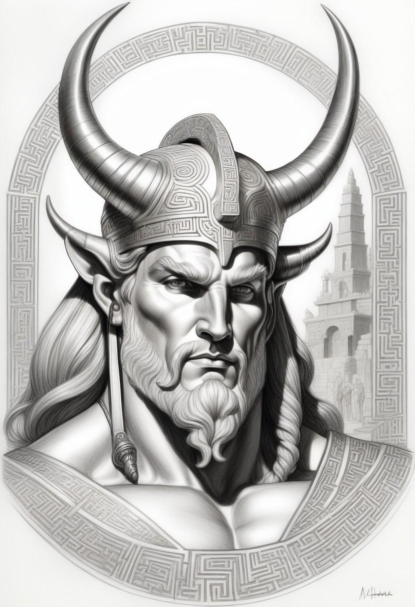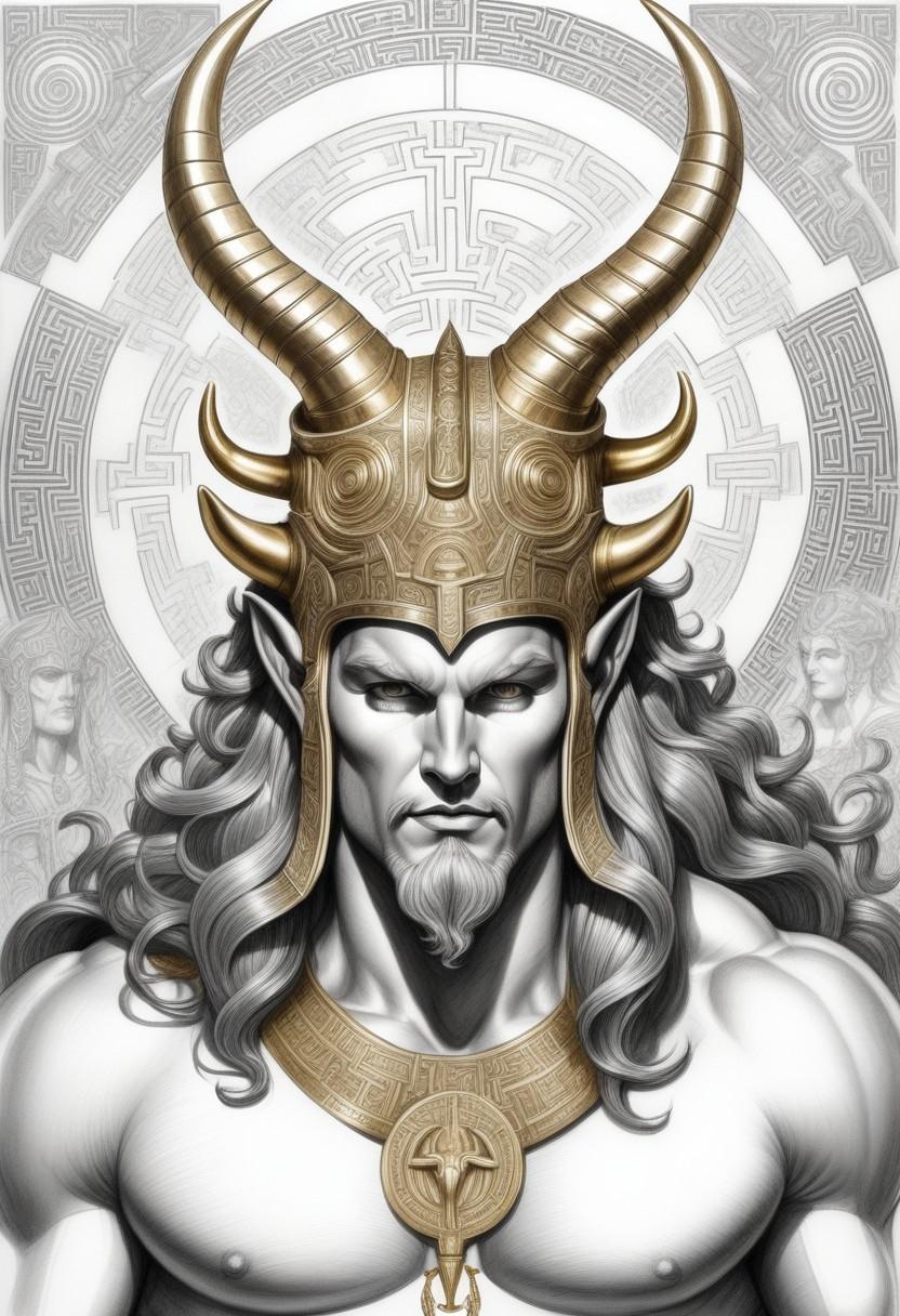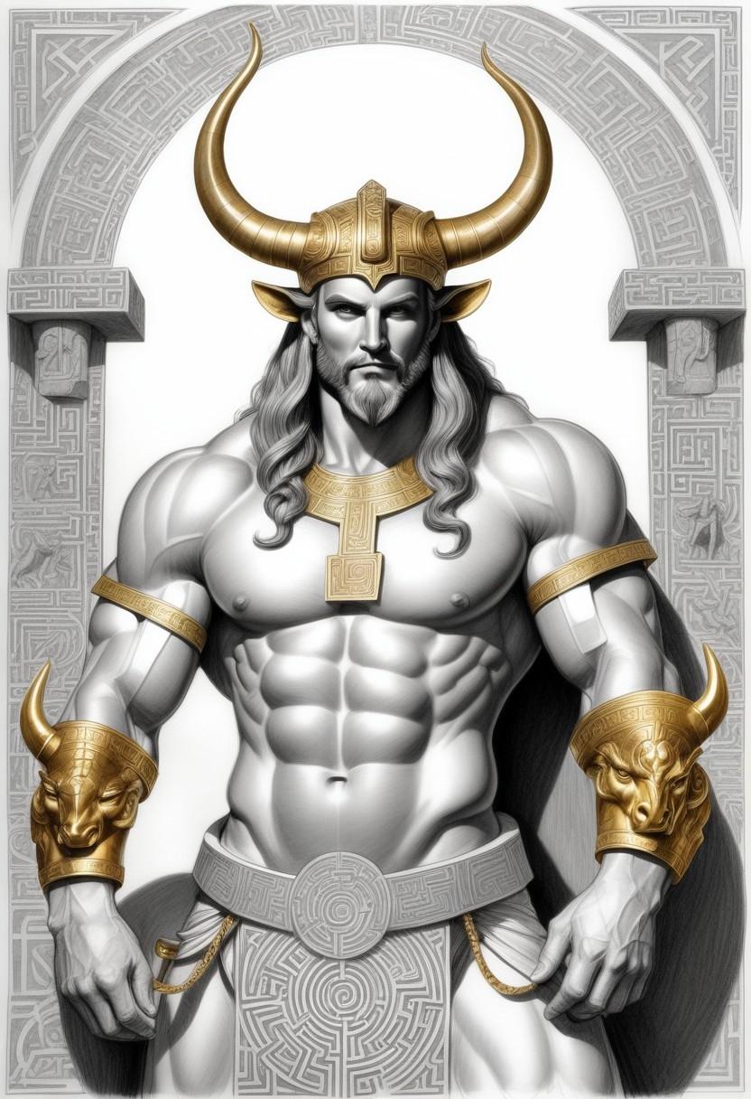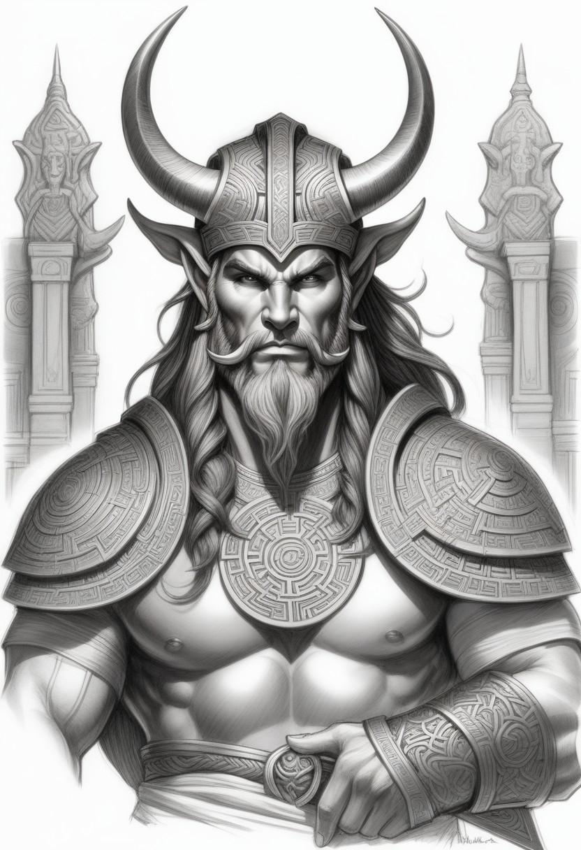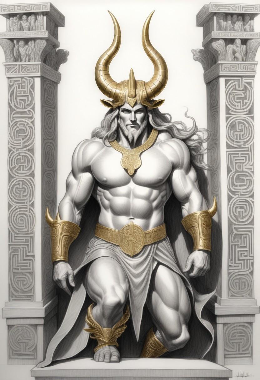 Mhuur appears as a huge Minotaur with golden horns. He likes large, gold and ivory statues and his worshippers go to great lengths to satisfy his vanity. A god of strength and loud sounds, he has some rivalry in both of these fields with the Orc god Kra. The conflict is also made worse by the fact that Mhuur wields a large battle axe that it is rumored to have been stolen from Kra's temple. One day, the two giants will meet on the battlefield and they will determine who can bellow the loudest, who has the strongest arms, and who has the right to wield that battle-axe.