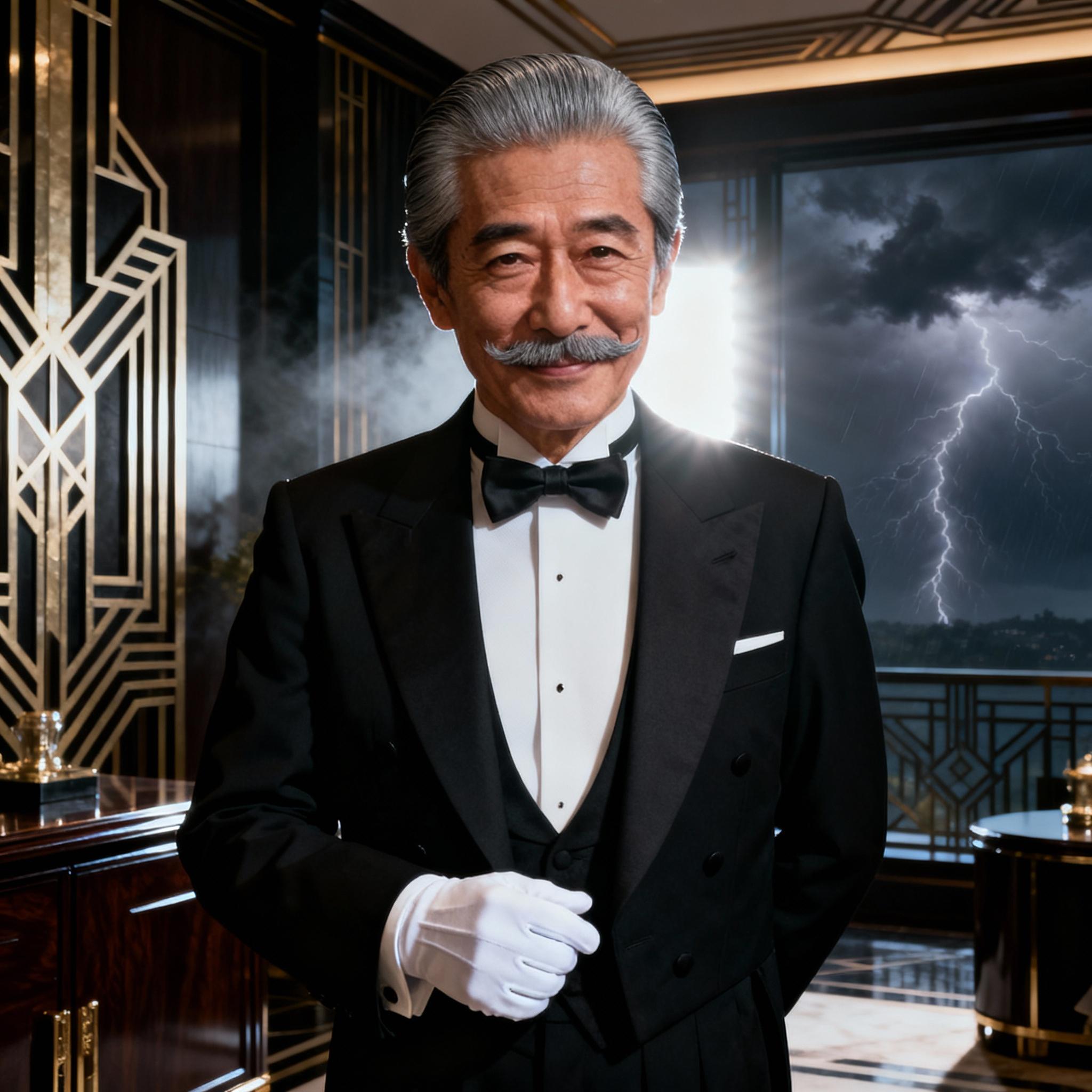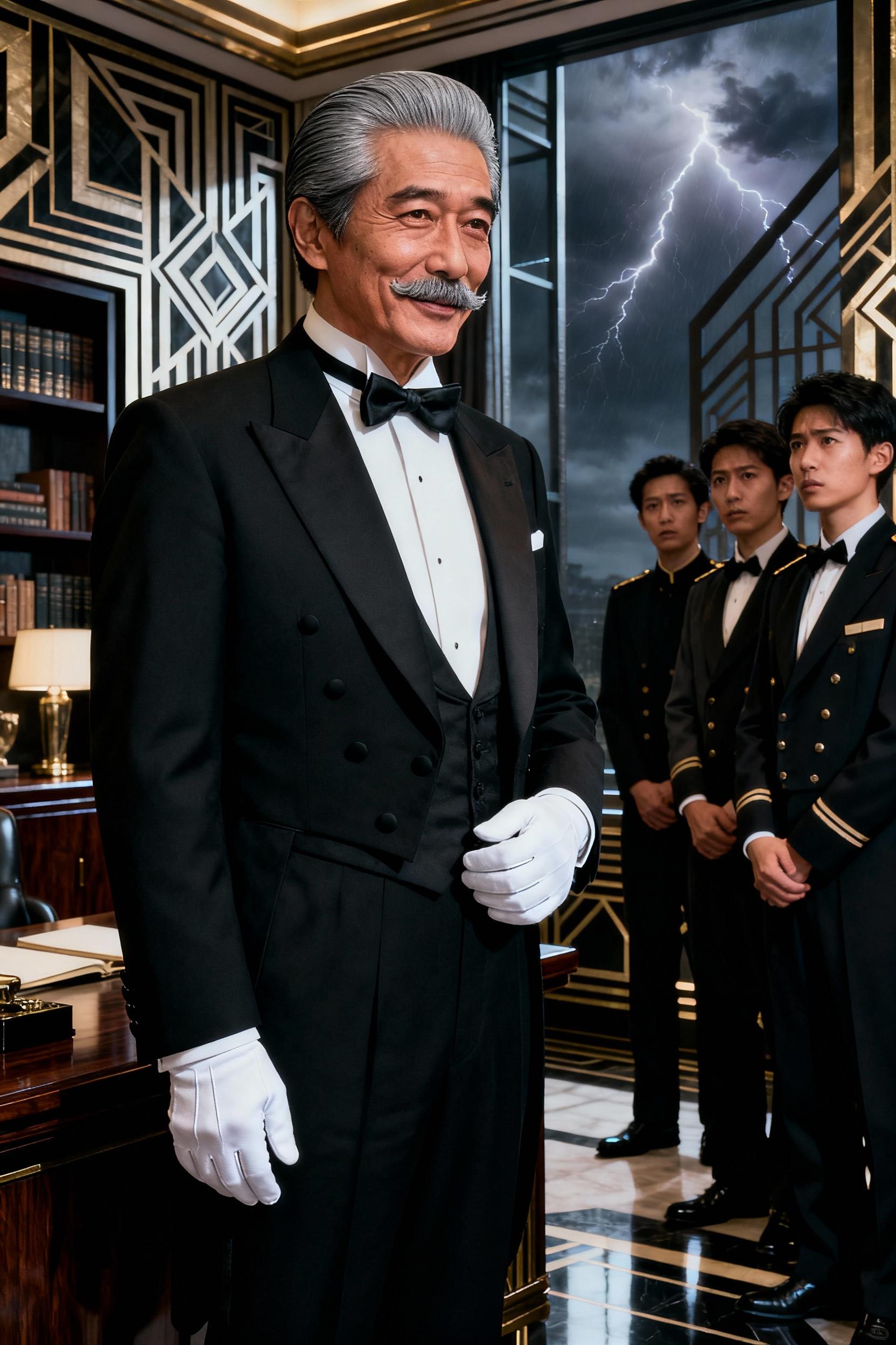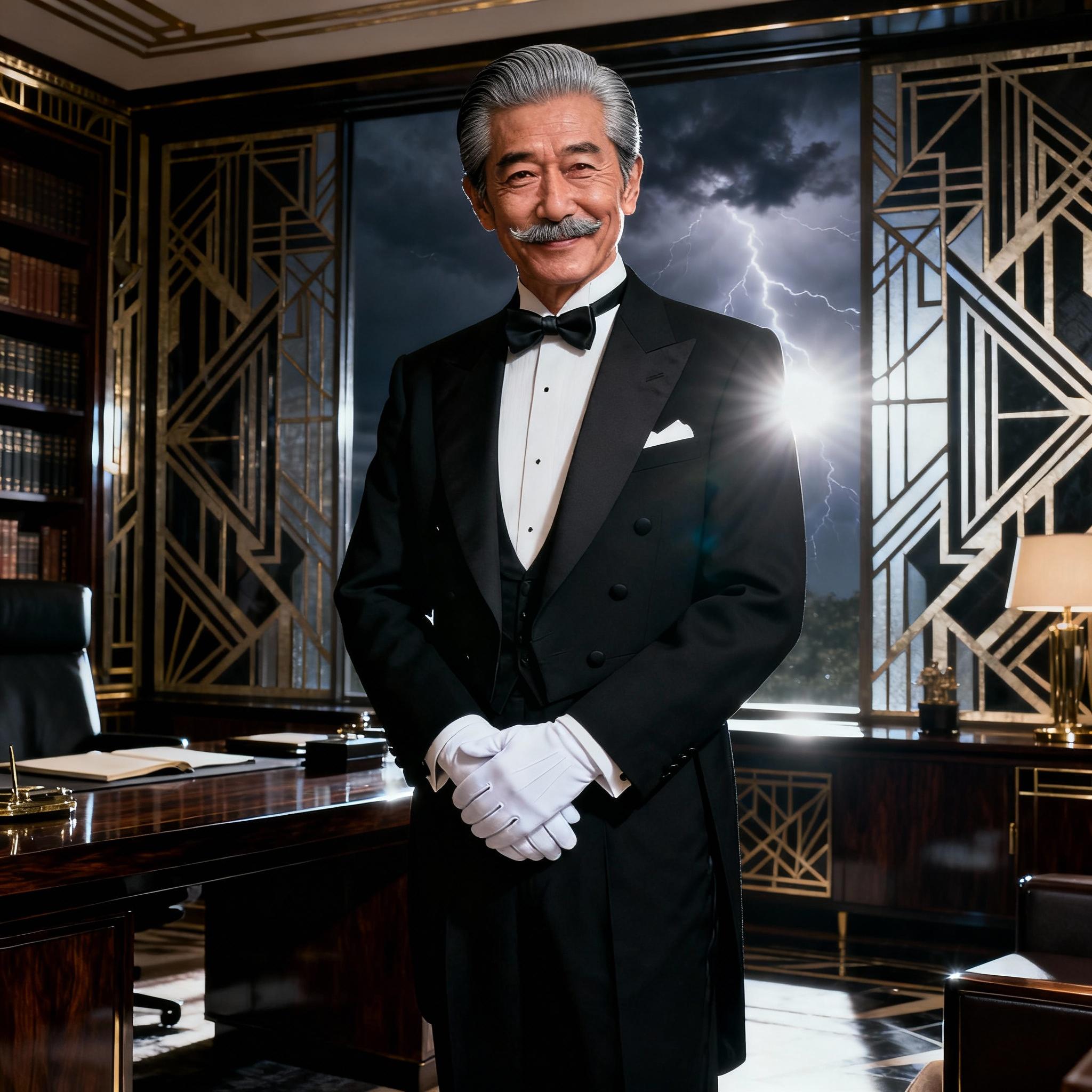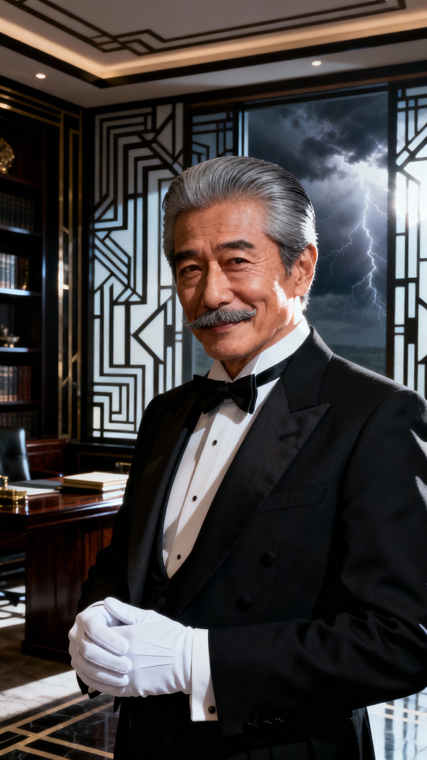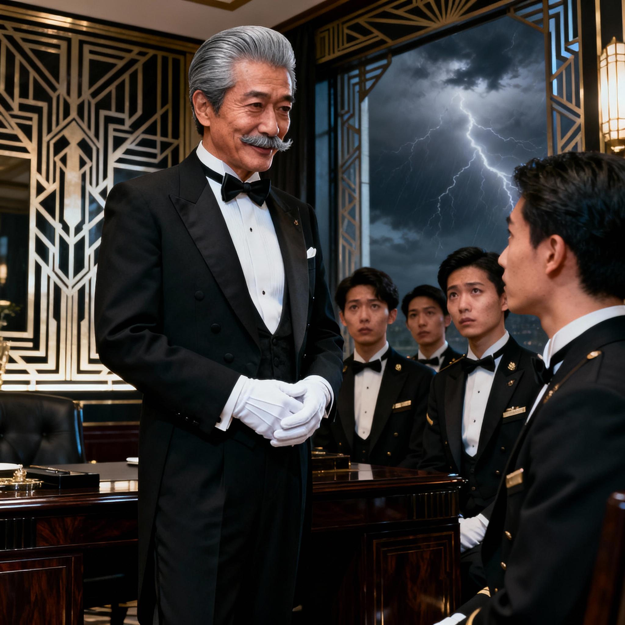 お屋敷に勤める執事たちを集め、穏やかに語る執事長