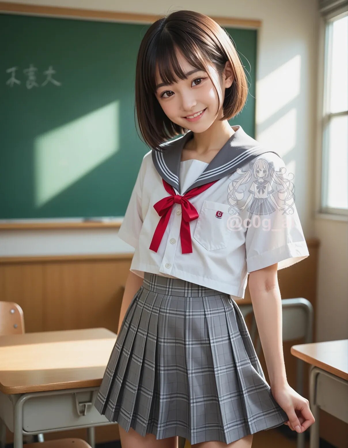 Koto-chan wearing a new summer uniform (mini skirt sailor uniform)