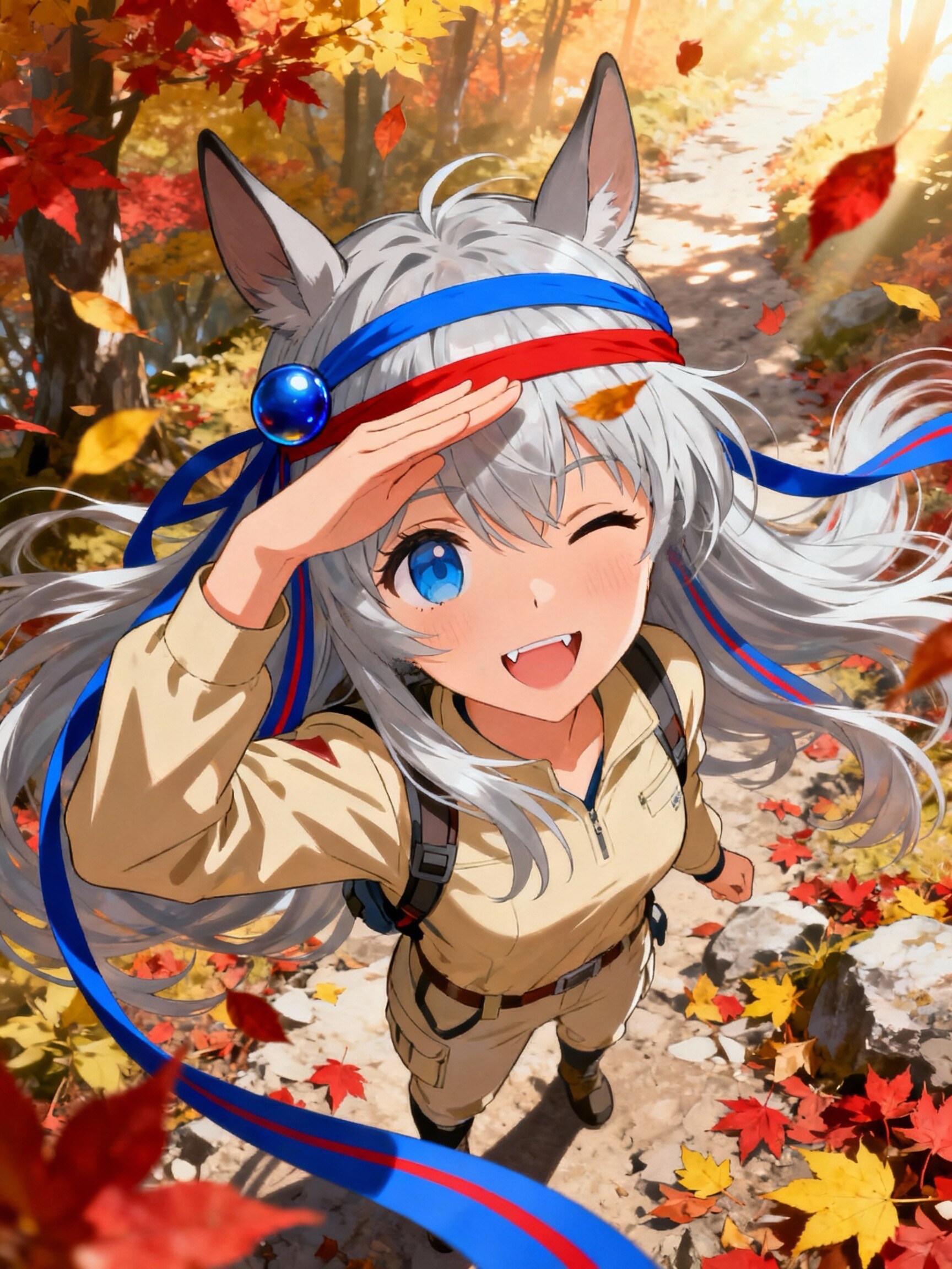 【Seedreamお試し】 えぇ天気やな!紅葉狩りには最高やで!