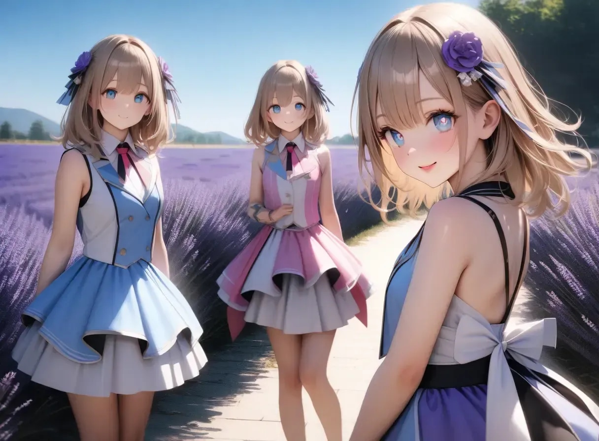 プロモーションの一環でラベンダー畑にきたアイドルたち