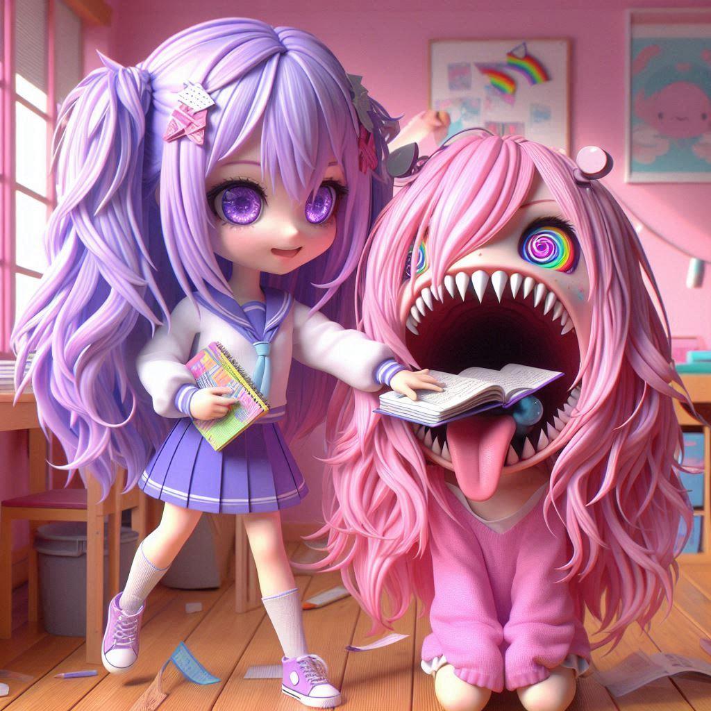 紫の髪がさいけで、ピンクの髪がでりこです。