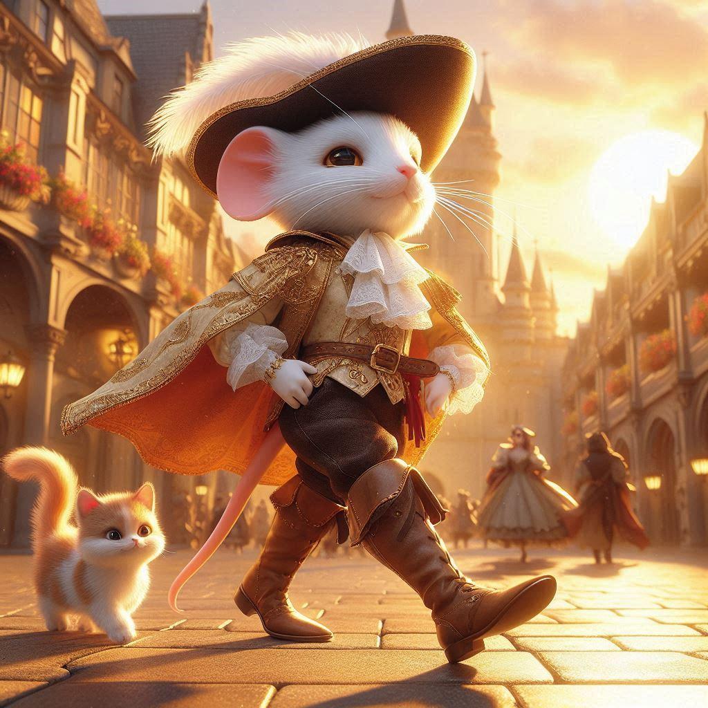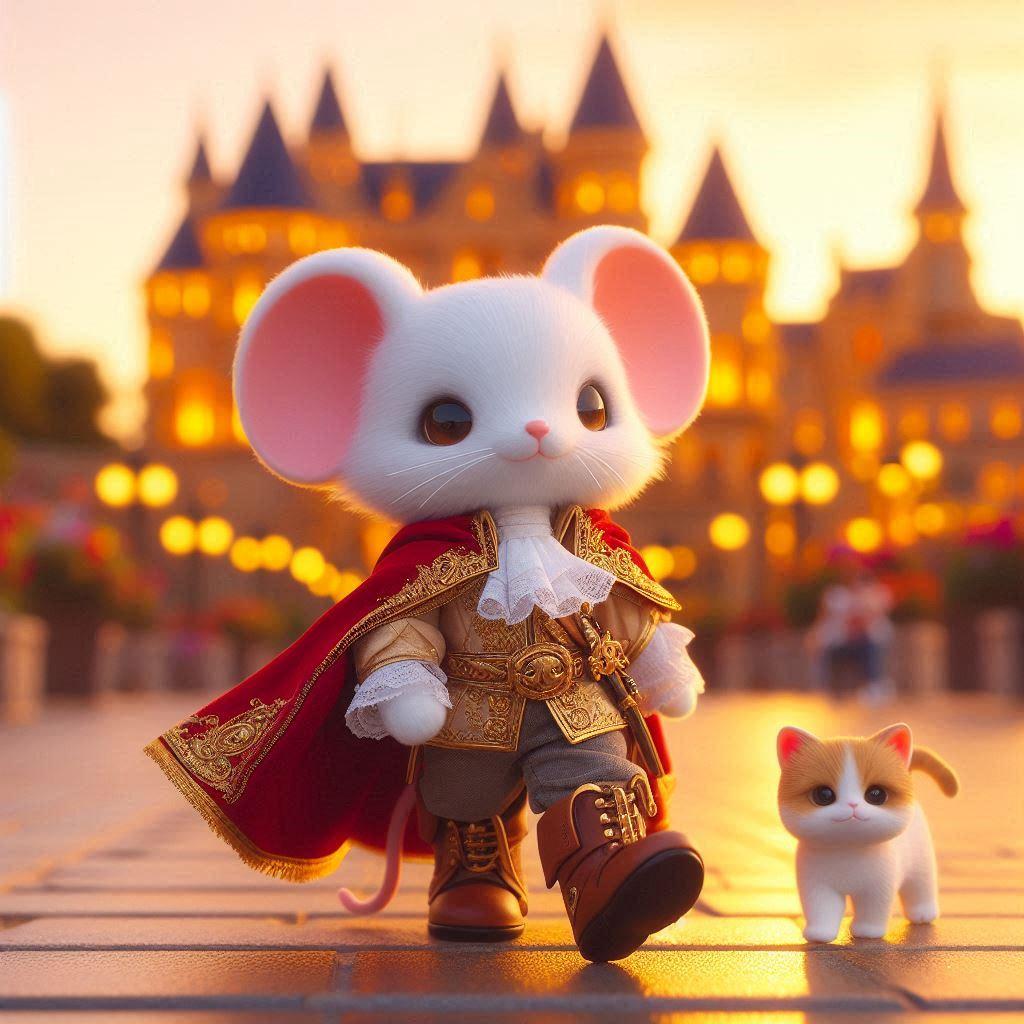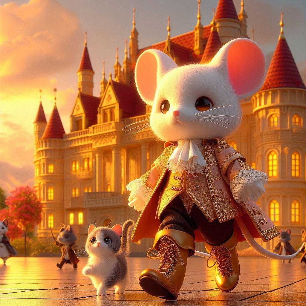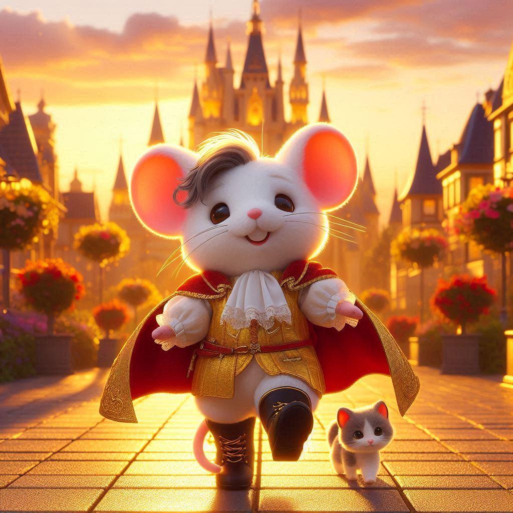 「長靴をはいた猫」の格好をしたねずみくん、で出してくれるDalleくんに感謝(^^)