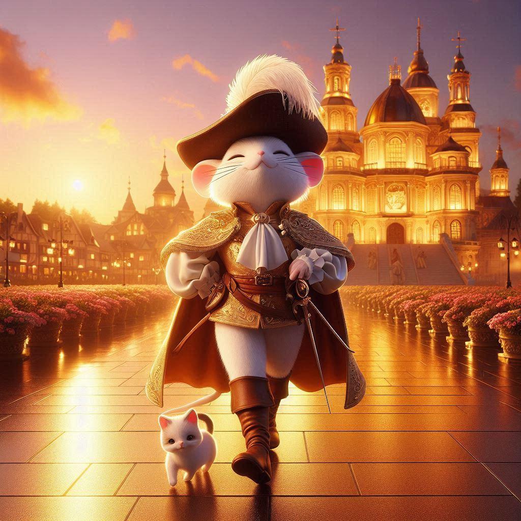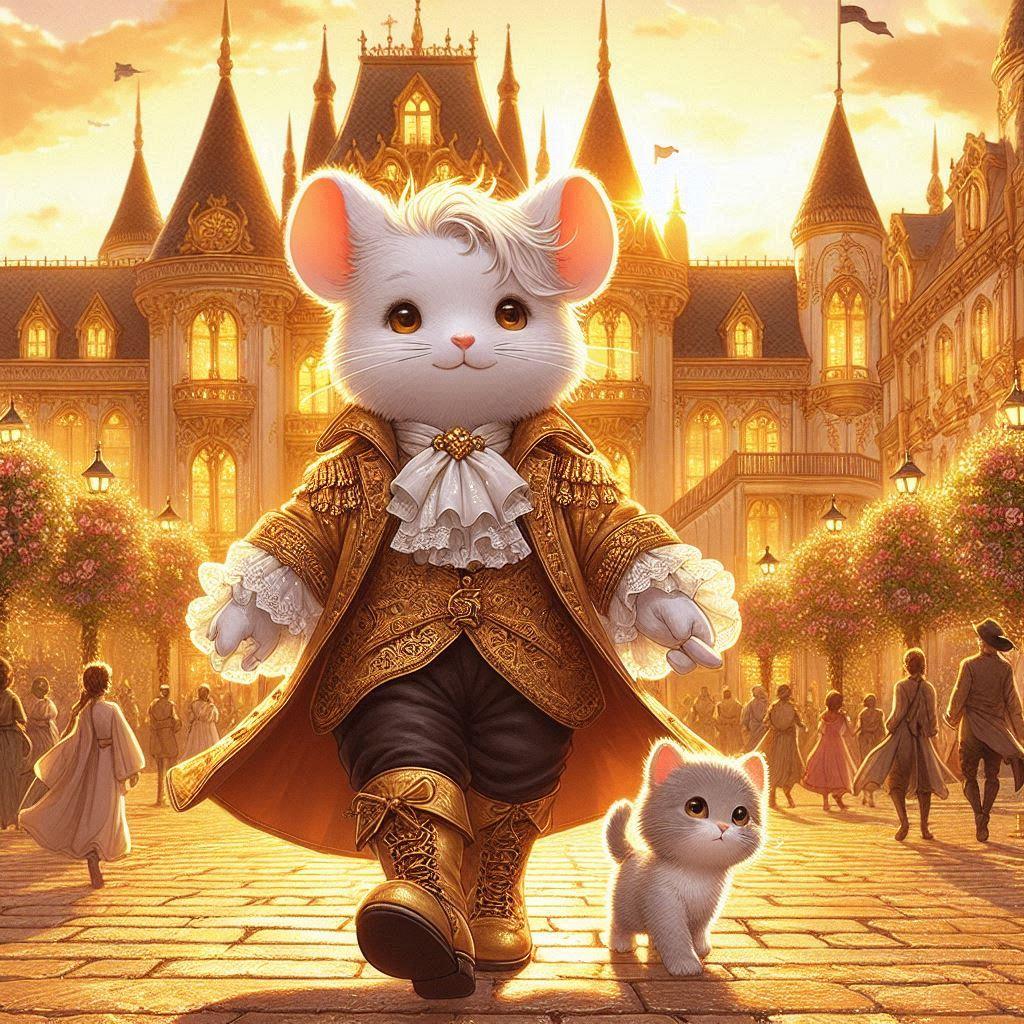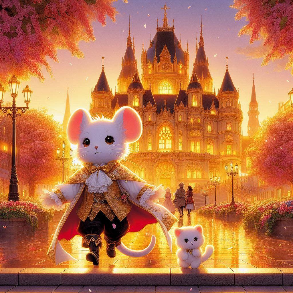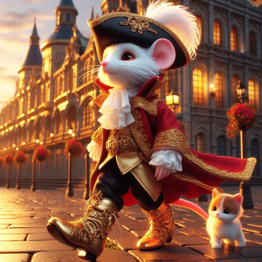 「長靴をはいた猫」の格好をしたねずみくん、で出してくれるDalleくんに感謝(^^)