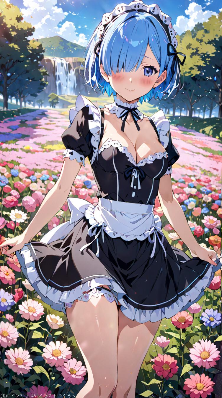レム: 優雅で大胆な佇まいで、彼女自身の時間を堪能。