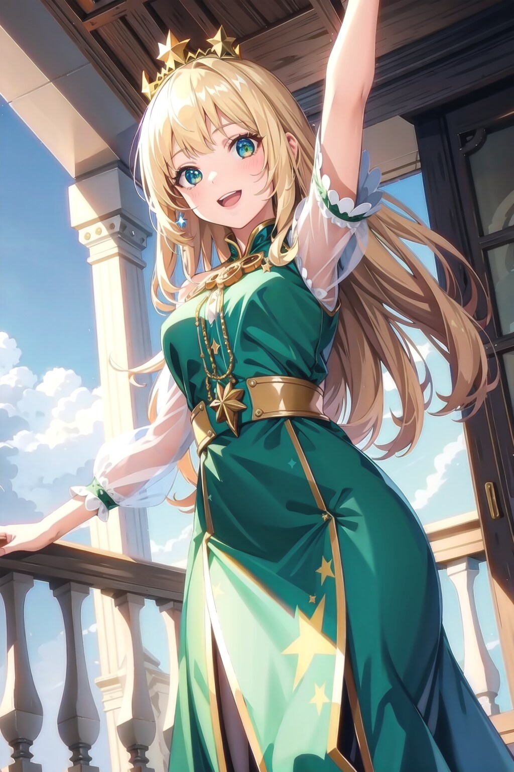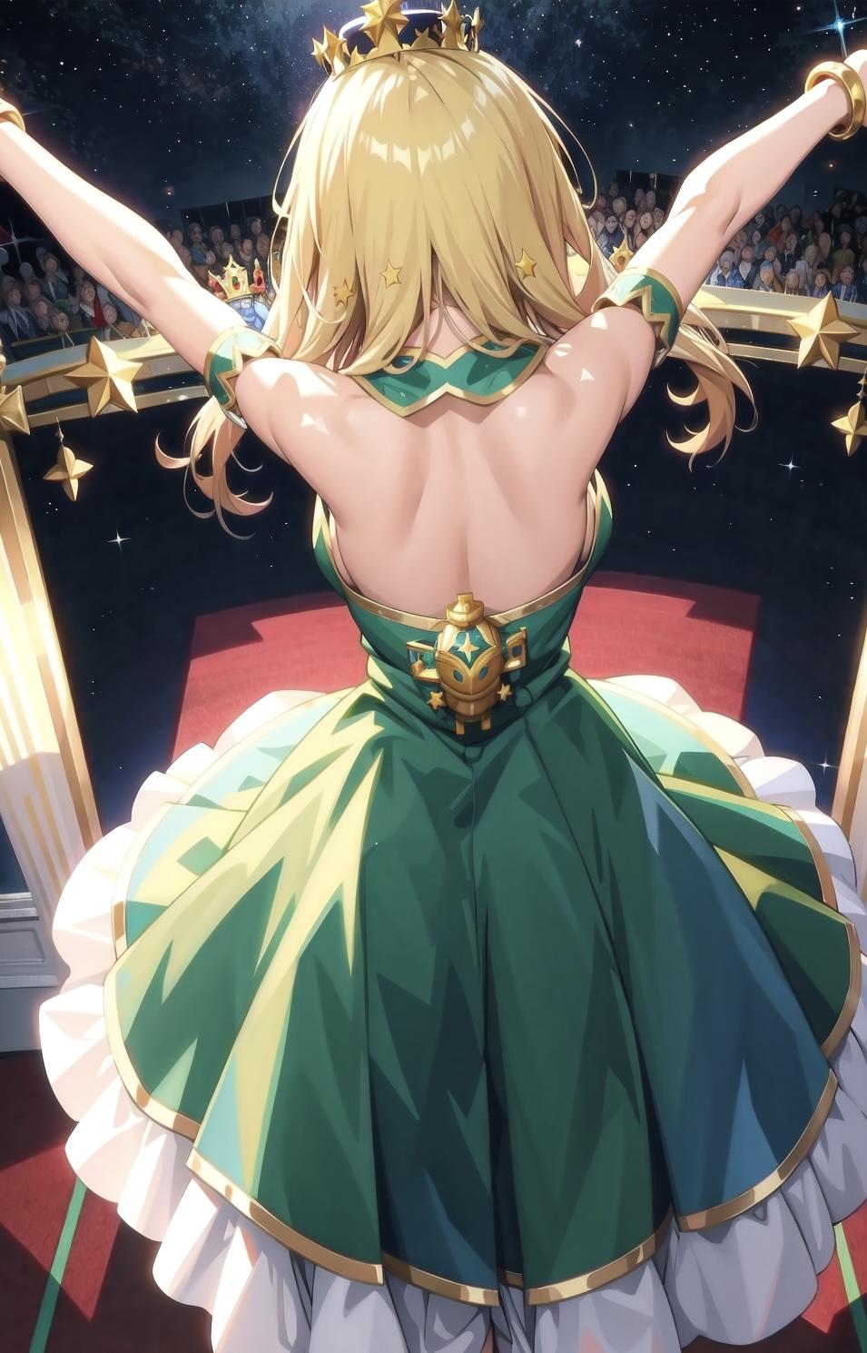 ④話の民衆に挨拶するシーンのイラストです。やはりこれも9〜10の構図でやりたかったのですが納得いく物が出来ず、やむなく前からの構図に変更。11は背景や衣装の雰囲気はあるのですがステラ自身がお淑やかな印象。12は背景がお城っぽさにかけるのでプロンプト強調して完成しました。