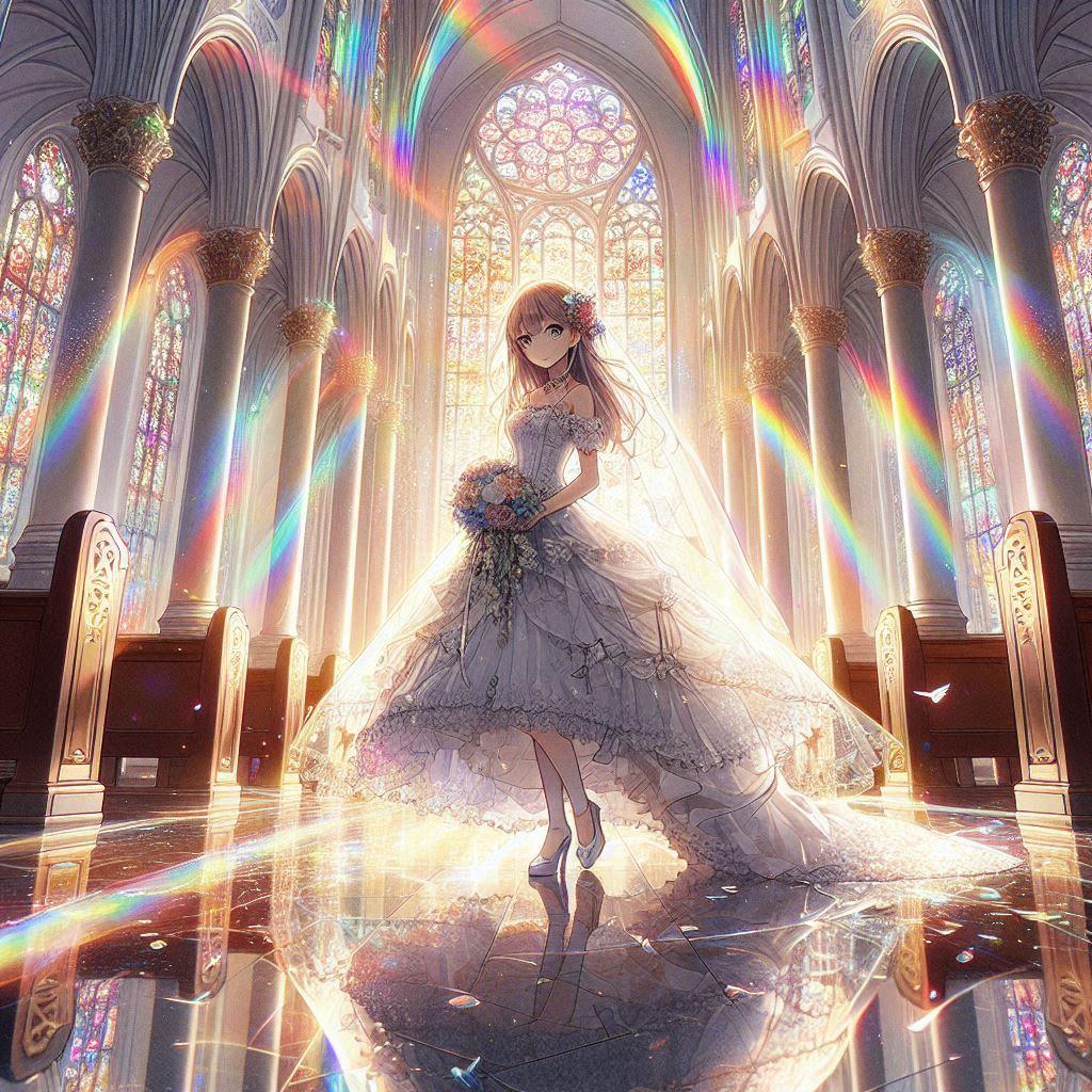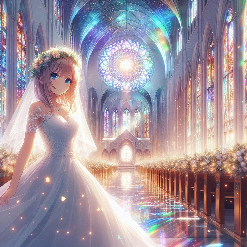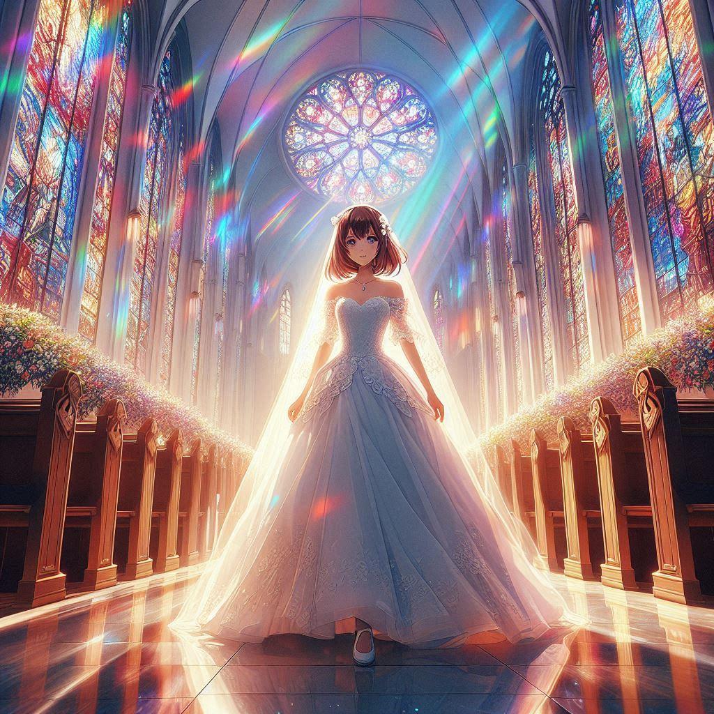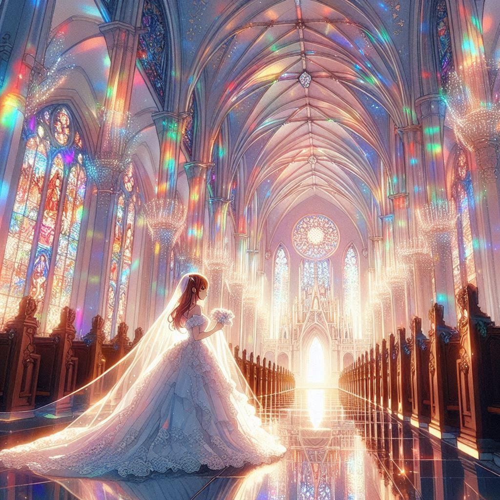 内容は、ステンドグラスの煌びやかな光に祝福され結婚する花嫁達♪って感じです。