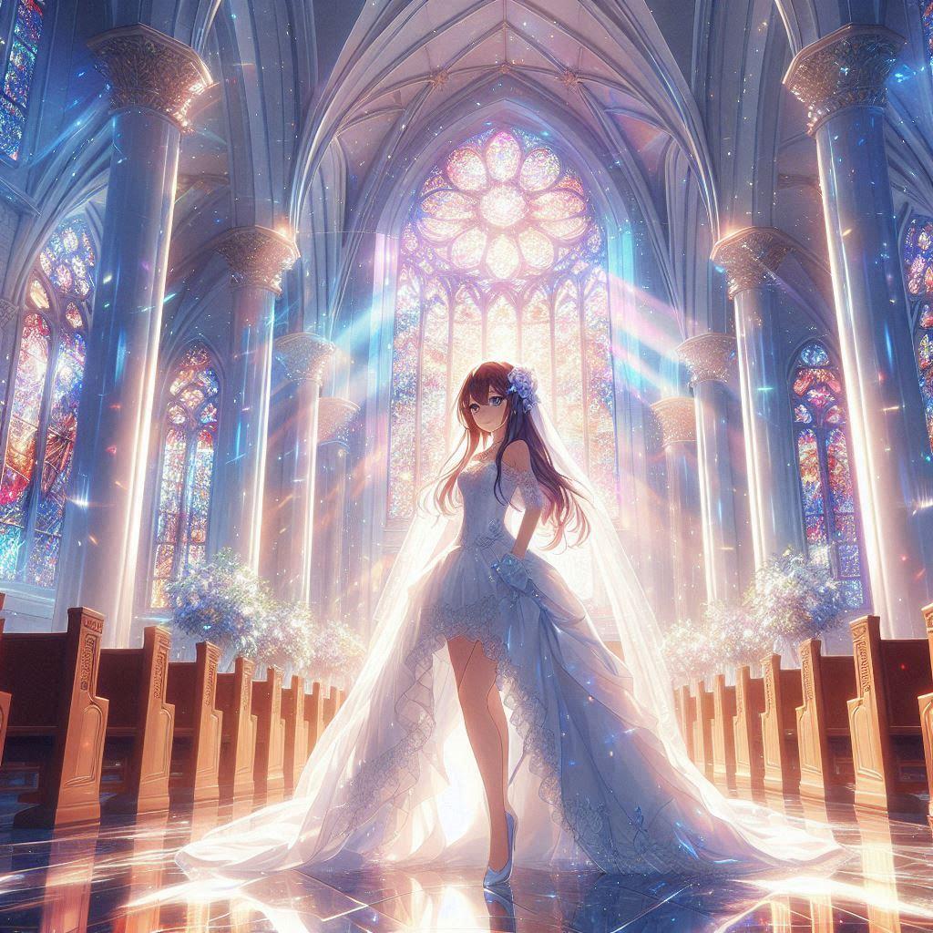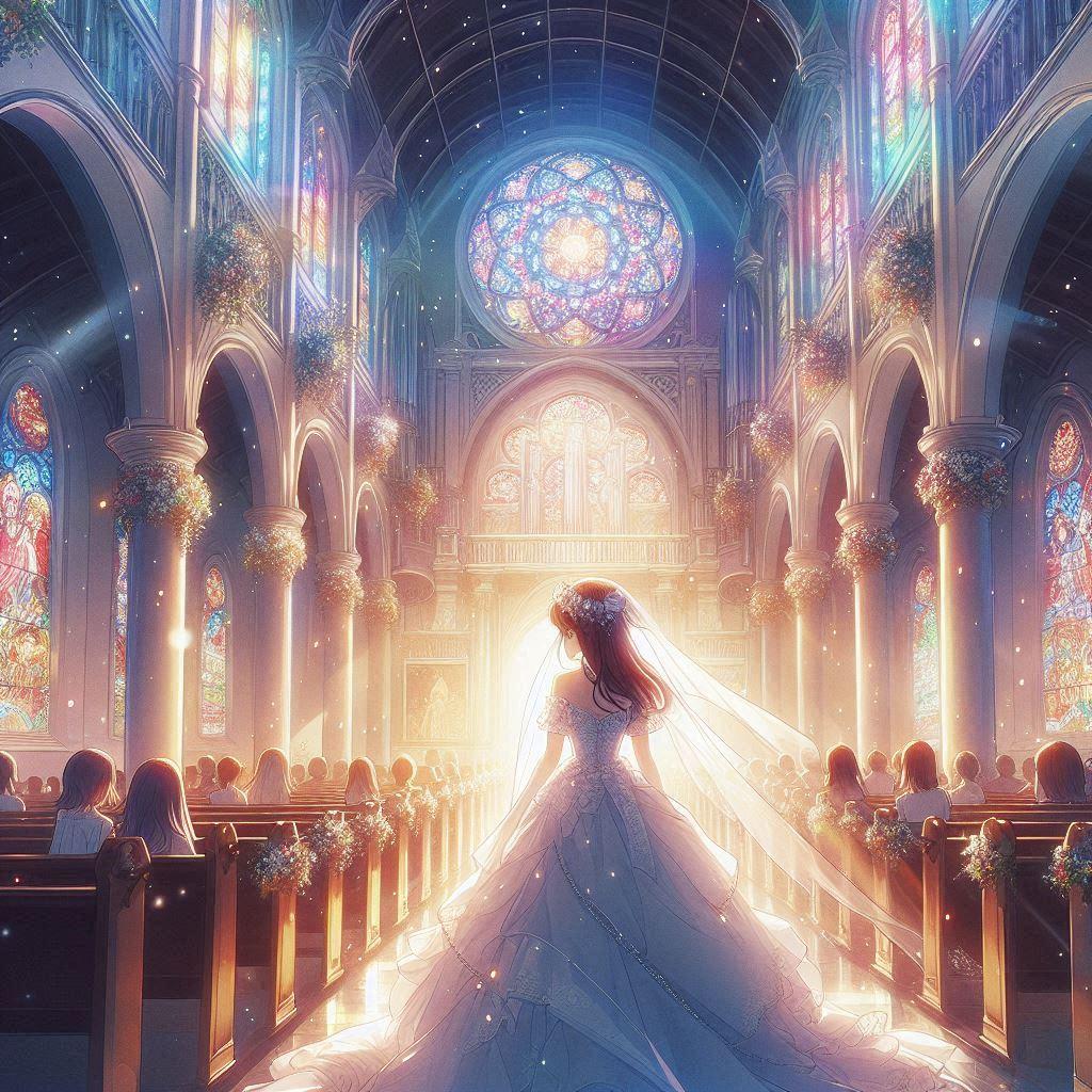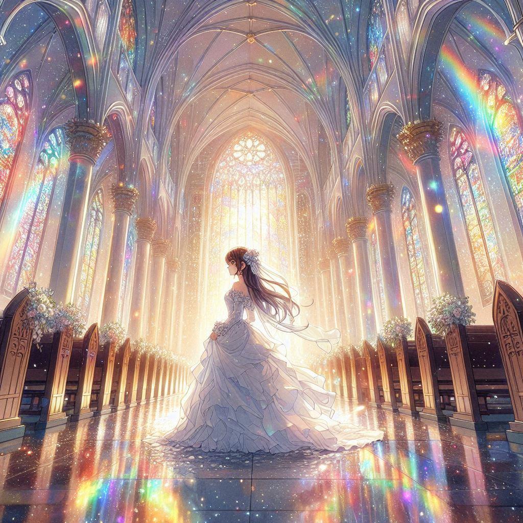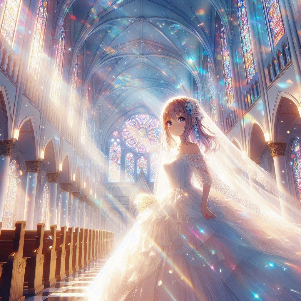 内容は、ステンドグラスの煌びやかな光に祝福され結婚する花嫁達♪って感じです。
