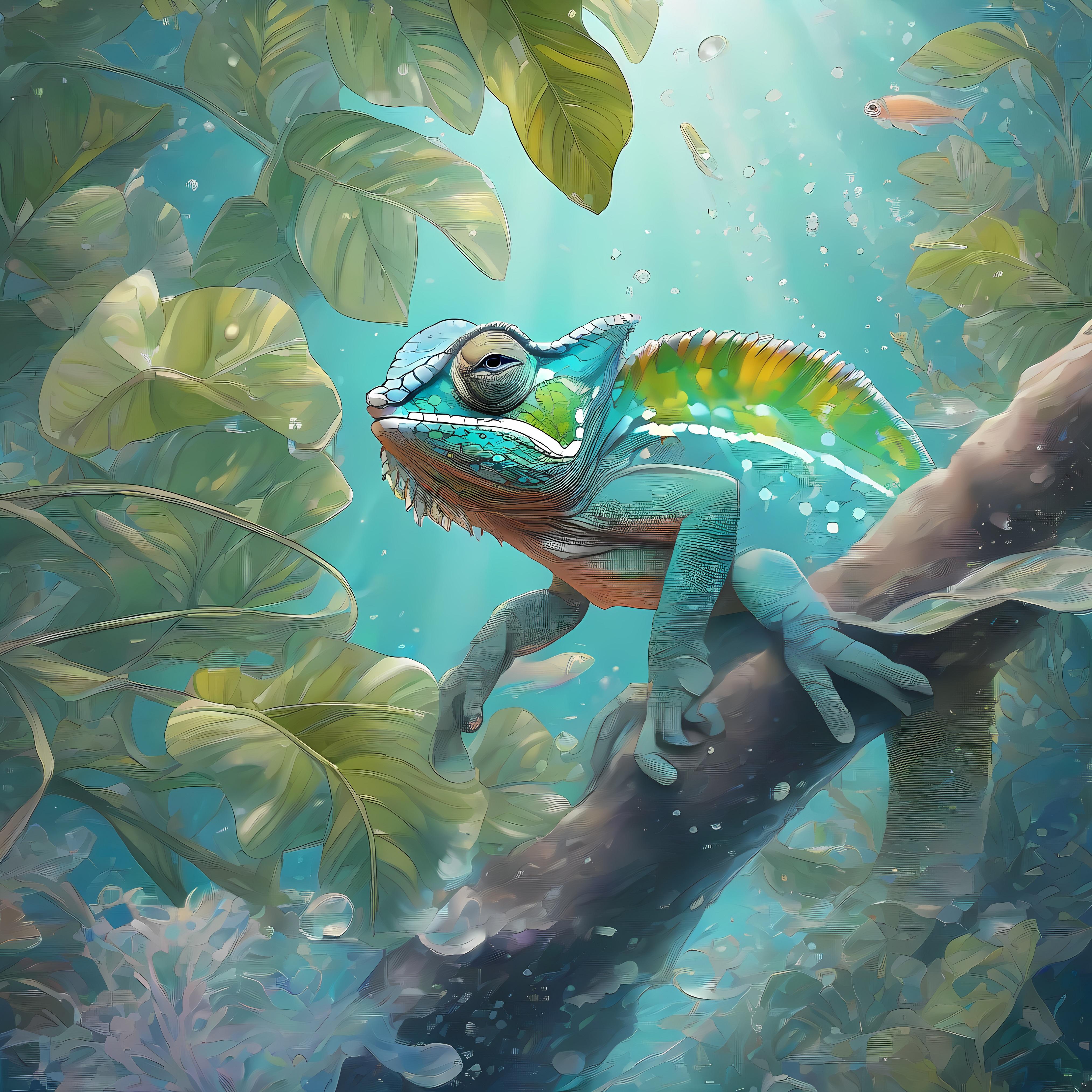 消しますが、淡い感じの水色に姿を消したカメレオンを