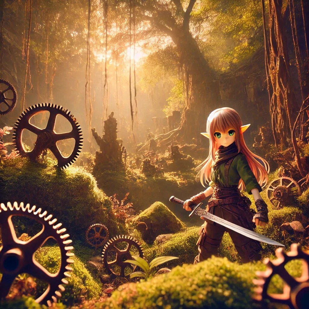 朽ちた歯車や遺跡の名残は、この聖域がかつての文明の遺産であり、いまだに秘められた力を宿していることを示しています。