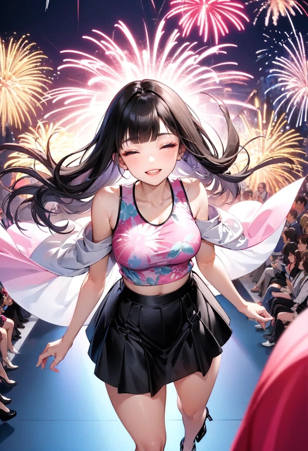 ⑦カジュアルに花火柄タンクトップ、気楽に夜店周りを♪